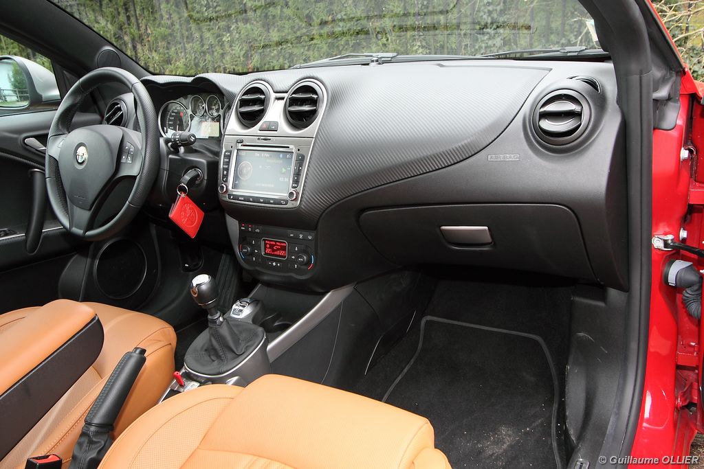 Ce bloc réussit l’exploit de ne rejeter que 139 g, ce qui pour 170ch est tout à fait raisonnable, et donc aucun malus ne vous sera demandé lors de l’achat. Vendue à partir de 22 200€ l’Alfa Romeo MiTo QV est tout à fait abordable. Pour comparaison c’est 2 000€ de moins qu’une Mini Cooper S. En terme d’équipements, la finition Quadrifoglio Verde est basée sur le niveau « Sélective » auquel s’ajoute le Pack Sport et les jantes 17 pouces. Au programme on retrouve donc de série l’ESP, le DNA, la climatisation manuelle, les jantes alliages 17 pouces, la sellerie cuir, un autoradio CD MP3 et c’est tout. Il faudra donc opter pour la case options si vous souhaitez disposer d’une climatisation automatique, du régulateur ou de l’allumage automatique des feux par exemple. Facturé 850€ le pack confort vous ajoutera le capteur de pluie, l’allumage automatique des feux, l’accoudoir avant, la climatisation automatique, le rétroviseur intérieur photochromatique, le réglage lombaire du siège passager, le radar de recul, et une prise 12V.