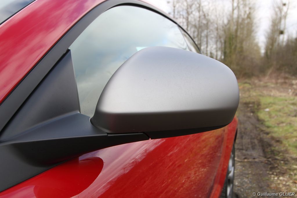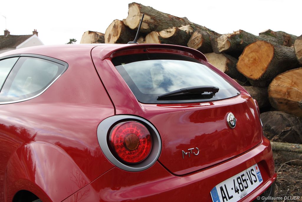 Le charme à l’italienne a encore frappé avec cette Alfa Romeo MiTo. Ses petits optiques ronds, son capot nervuré, sa calandre triangulaire et ses ailes renflées ne laissent pas indifférents les passants. L’appellation Quadrifoglio Verde n’était pas ressortie des cartons depuis 1995 avec la 145 ! Aujourd’hui la marque italienne renoue avec ce symbole pour indiquer un modèle à connotation sportive, mais pas autant qu’une GTA. Quelques éléments spécifiques distinguent la version QV des autres. Les jantes, rétroviseurs et contours de phare sont de couleur titane. A l’arrière on retrouve un spoiler et un pare-choc sport muni d’un extracteur. Et bien sûr le fameux trèfle à quatre feuilles apposé au dessus des répétiteurs de clignotant. Les jantes proposées de série sont en titane et de 17 pouces. Comme sur notre modèle d’essai il est possible de prendre en option des jantes en 18 pouces. Certains regretteront le peu de différences entre une MiTo classique et la version QV, quand d’autres apprécieront cette sobriété.