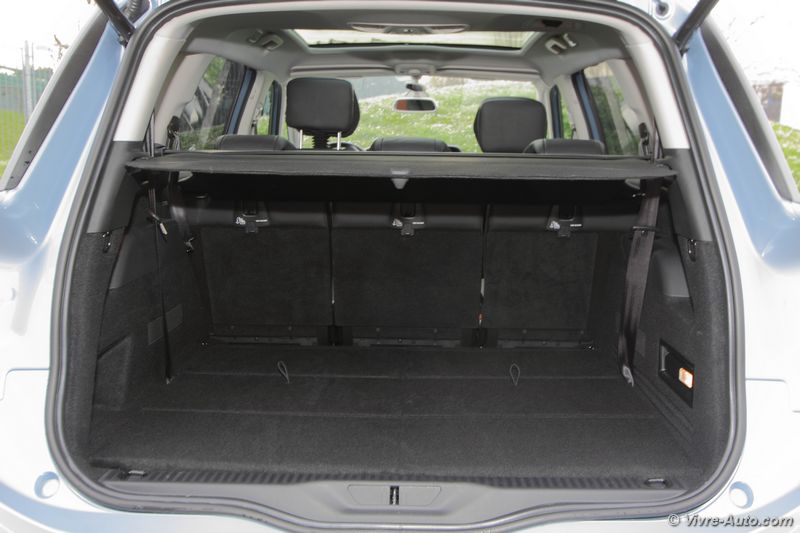 Le volume du coffre du C4 Picasso grimpe à 537 litres ou 630 litres lorsque les sièges de la deuxième rangée sont avancés au maximum, c’est 37 litres de plus d’avant. Le Grand Picasso offre un volume de chargement un peu plus conséquent de 700 litres mais surtout deux places supplémentaires avec des sièges qui s’escamotent sous le plancher. Cette troisième rangée est plus accessible qu’auparavant et dispose de buses de climatisation mais reste toujours dédié aux enfants en bas âge et réduit considérablement le volume du coffre. Sur les deux versions le hayon peut être motorisé et l’accès est très grand avec l’absence des feux et un seuil bas. Lorsque les sièges sont rabattues on obtient un plancher plat, la manœuvre s’effectue très facilement.