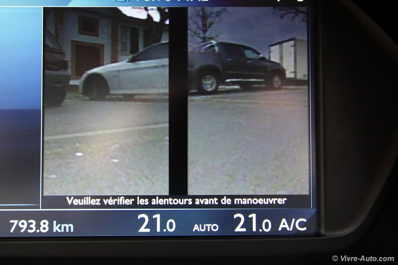 premier de 12 pouces situé dans la partie haute affiche les informations de conduite, la partie gauche reste fixe avec la vitesse, et à droite au choix, le cadran de compte tours, la consommation de carburant, la navigation ou encore une photo, le tout proposé en trois thèmes différents. Le deuxième écran de 7 pouces est tactile et sert d’interface de commande avec six fonctions principales, la climatisation, les aides à la conduite, le système audio, la navigation, le module internet, et la téléphonie. Tout est ainsi regroupé et peut perturber au début mais une fois habitué on s’aperçoit que c’est extrêmement pratique. L’ergonomie de la planche de bord est une vrai réussite et facilite la vie au quotidien. Ce n’est pas le cas des commandes au volant, pas moins de 12 touches et 4 molettes permettent de piloter le système audio, le régulateur de vitesse, le Bluetooth, l’ordinateur de bord, l’aide de parking, le mode nuit… On en est même à presque regretter les anciens commodos de PSA sous le volant. Autre changement, celui de la position du levier de vitesse. Dorénavant situé au bas de la console centrale, il ne fait plus partie de la planche de bord et son utilisation se montre ainsi plus confortable. La qualité de finition a été revue à la hausse avec des matériaux très valorisant. Mais là où la marque aux chevrons va encore plus loin c’est avec les nombreux équipements du catalogue !