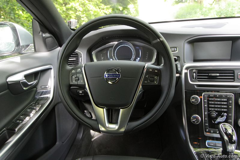 Volvo V60 Plug-In Hybrid intérieur - Vivre AutoEsthétiquement qu’est ce qui change ? Seuls les amateurs pourront remarquer cette version au loin puisque quasiment l’intégralité du break est conservé à quelques détails près. Une trappe supplémentaire située sur l’aile avant gauche pour la recharge, des jantes spécifiques et deux sorties d’échappement rectangulaire à l’arrière. A l’intérieur on retrouve toujours l’excellente ambiance premium des Volvo, rien ne change, hormis l’apparition de trois boutons et d’une instrumentation adaptée au système hybride. Jusque là tout va bien, mais lorsque l’on ouvre le coffre, on s’aperçoit que le plancher arrive au niveau du seuil de chargement. En effet, à cause de l’emplacement de la batterie, le volume passe de 430 litres à 305 litres ! Dommage pour un break d’avoir une capacité de chargement d’une compacte.