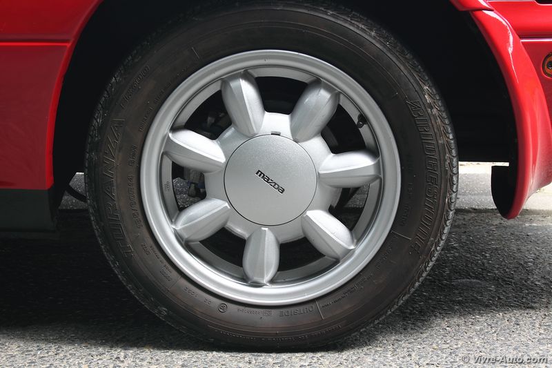 Contact enclenché, le moteur démarre au quart de tour ! Issu de la Mazda 323, il s’agit d’un quatre cylindres de 16 soupapes développant 115 ch et un couple de 115 Nm. Aujourd’hui cela pourrait paraître peu mais il en n’est rien ! Avec son poids plume, moins d’une tonne, le MX-5 passe de 0 à 100 km/h en 8,8 secondes pour une vitesse maximale de 190 km/h. Mais ce que l’on retient surtout de cette voiture, c’est le plaisir de conduite ! Même après 25 ans, on ne peut s’empêcher de sourire au volant de ce cabriolet. Il se conduit très facilement et le son du moteur est un régal. Il monte dans les tours sans broncher et la boîte de vitesse, même si elle peut paraître ferme à manier, offre un bon agrément. A l’époque il n’existait pas toutes les aides électroniques que l’on connait aujourd’hui, notamment l’ESP. Pourtant, le petit cabriolet japonais inspire confiance sur la route. La direction est précise et le train avant s’inscrit parfaitement en courbe, ajouté à cela l’excellente répartition des masses (50/50) et ont obtient un sacré jouet. Seul les distances de freinage sont bien en retrait de ce qui se fait actuellement. Notre modèle affichait 120 000 km au compteur, pourtant on aurait dit qu’il était neuf ! Sa fiabilité n’est plus à prouver et si vous consultez les annonces vous remarquerez que certains atteignent bien plus du double de kilomètres !