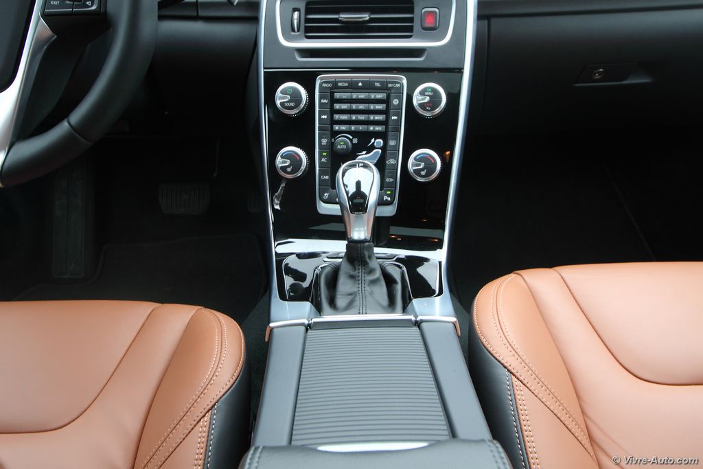 La Geartronic et ses huit rapports est un exemple de douceur et de réactivité, cette boîte est une réussite et augmente considérablement l’agrément de conduite. De plus elle n’engendre pas énormément de consommation supplémentaires par rapport à la transmission mécanique. Il faut le dire, ce D4 est extrêmement sobre, il dispose de la technologie i-ART qui, grâce à son système de régulation du débit de chaque injecteur, réduit considérablement les consommations. Ajouté à cela que la Geartronic tend à rouler à régime constant, on obtient un beau résultat. En enchaînant autoroute, agglomération et montagne notre moyenne s’est retrouvée sous les 6,5 l/100 km. Tant pis donc pour le cinq cylindres, ce nouveau bloc est une réel réussite. Sobre et performant, pas mieux ! Malgré nos jantes de 18 pouces, la S60 s’est montrée plutôt confortable et son châssis, sans être dynamique, efficace. Petit bémol, un rayon de braquage un peu long.