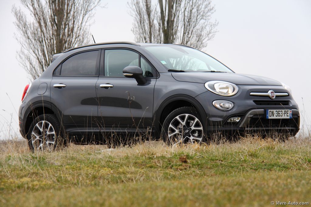 Essai de la Fiat 500X 1.6 Multijet 120 - Vivre AutoCousin du Jeep Renegade, le 500X partage la même plateforme, c’est pourquoi il est aussi proposé en version quatre roues motrices, un plus par rapport à la concurrence. Pour l’instant l’offre moteur est composée de deux essences 1,6l 110 ch et 1,4l MultiAir 140 ch et deux Diesel les 1,6 l MultiJet 120 et 140. Nous avons pris le volant du crossover avec le 1,6 MultiJet 120 qui représente le cœur de gamme. Il développe 120 ch à 3.750 tr/mn et un couple de 320 Nm dès 1.750 tr/mn. Après plusieurs kilomètres on constate vite que cette mécanique est largement suffisante pour déplacer les 1.320 kg. Il se montre assez dynamique et offre un très bon agrément. De même pour la boîte manuelle à six rapports, très bien étagée. Un sélecteur offre trois modes de conduite, normal, sport ou All Weather qui interagissent sur la pédale d’accélération, la boîte de vitesse, la direction et l’ESP. Durant notre essai le MultiJet nous a convaincus par sa sobriété, nous avons établit une consommation moyenne de 6,3 l/100 km. Le start&stop a été plutôt grincheux puisqu’il ne s’est jamais enclenché, il se base sur beaucoup de critères et le climat n’était surement pas propice. Concernant les liaisons au sol, le crossover tient parfaitement la route mais au détriment d’une suspension plutôt ferme, même en 17 pouces.