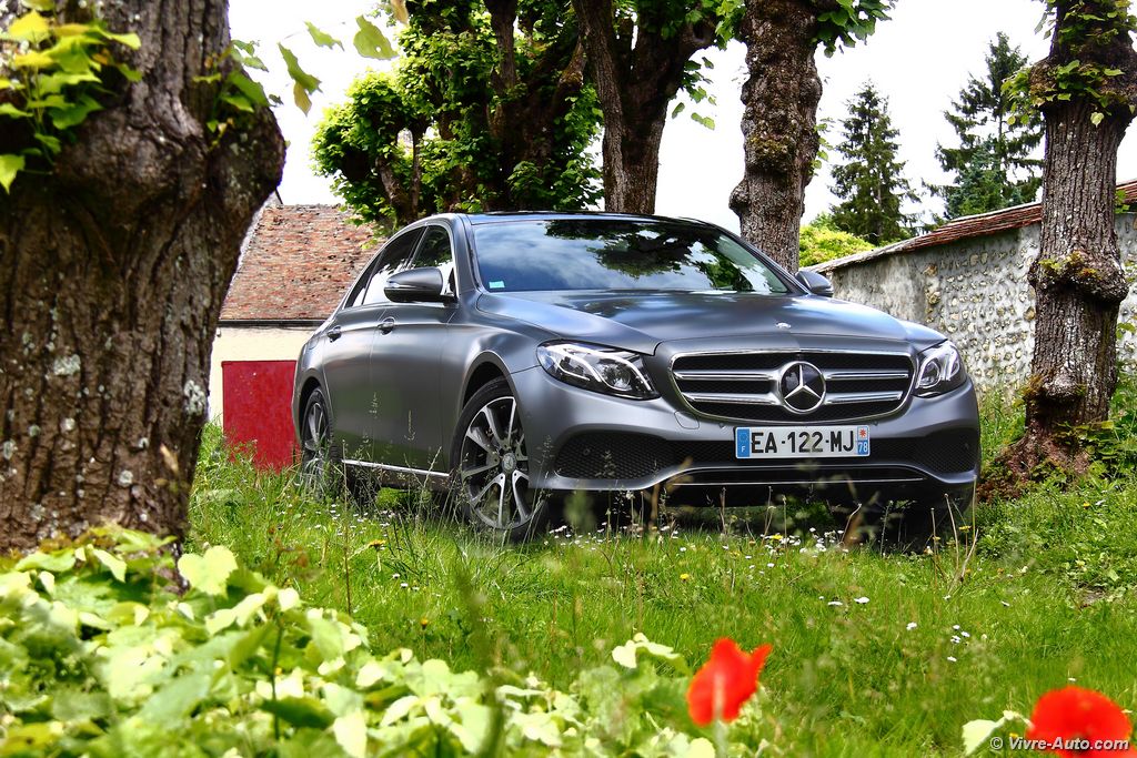 Pour l’instant, la Classe E est disponible avec trois motorisations. Un bloc quatre cylindres essence de 184 ch (200) et deux Diesel, un quatre cylindres de 194 ch (220 d) et un V6 de 285 ch (350 d). Notre choix s’est porté sur le premier Diesel, un nouveau moteur qui devrait représenter une bonne partie des ventes. Ce bloc 2,0l, qui remplace l’ancien 2,2l de 170 ch, développe 194 ch à 3800 tr/mn et un couple de 400 nm à 1.600 tr/mn. Premier constat cette nouvelle mécanique se montre bien plus silencieuse et moins vibrante à bas régime, c’est bien plus agréable. Le couple généreux offre des performances honorables, avec des accélérations volontaires et de bonnes reprises. Rien de bien impressionnant non plus, les personnes souhaitant plus de sensations devront se tourner vers le V6. La boîte automatique à 9 rapports est très douce, elle participe grandement au bon agrément général. Son rôle est aussi d’optimiser au maximum la consommation, annoncée à 3,9 l/100 km en cycle mixte, notre E 220 d s’est contentée d’environ 6