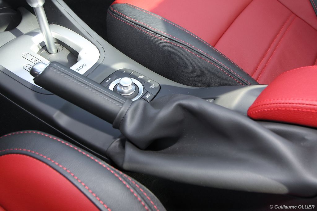 Le TCe 130 fait partie de la famille des moteurs dit « downsizés ». C’est-à-dire une faible cylindrée associée à un turbo, ayant pour but d’obtenir un meilleur rapport couple et puissance, tout en réduisant la consommation. Le 1,6 110 ch, et le 2,0 l 140 ch n’étant plus proposés au catalogue, il vient alors se placer entre les deux. Au démarrage, nous sommes surpris par le silence au ralenti. Cela se confirme également en roulant, pour entendre le moteur il faut dépasser les 2 000 tr/mn. Ce bloc moteur essence d’une cylindrée de 1 397 cm3 développe 130 ch à et un couple de 190 Nm à 2 250 tr/mn. Très souple, il est agréable en usage urbain et convient parfaitement à la philosophie du cabriolet. Toutefois avec 1 500 kg à déplacer, le TCe 130 manque de punch, et se montre un peu juste lors des dépassements. Ne vous attendez donc pas à des performances dynamiques. La boîte de vitesse à six rapports ne souffre d’aucune critique, le guidage et les débattements sont agréables au quotidien. Annoncée à 7,3l/100km en cycle mixte, la consommation relevée lors de notre essai avoisinait plutôt les 9,5 l/100 km ! De plus ce moteur rejette xx de CO², ce qui entraîne un malus de 750 € lors de la commande ! Comme pour la berline, la Mégane CC est relativement confortable sur tous types de revêtements, un bon point, surtout face à la concurrence. Le châssis dispose de réglages spécifiques et la répartition des masses a été travaillée. Le comportement routier est très agréable, à la fois confortable, mais également précis, avec une bonne rigueur de guidage en virage. Le roulis est bien maîtrisé. On appréciera également la direction à assistance électrique variable et le freinage efficace. La visibilité à l’avant est bonne, tandis qu’à l’arrière la petite vitre en verre, et l’antenne en position centrale sur le coffre gênent. Quant aux manœuvres, au vu du gabarit de la voiture privilégiez donc les radars de stationnement. Pour finir, nous aurions aimé dire que l’insonorisation à bord est parfaite, mais les grésillements générés par les supports de verrouillages de ceintures gâchent considérablement cet aspect. A vérifier sur d’autres modèles.
