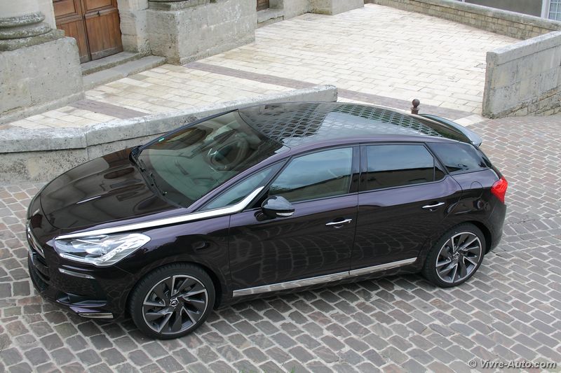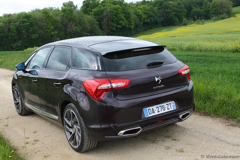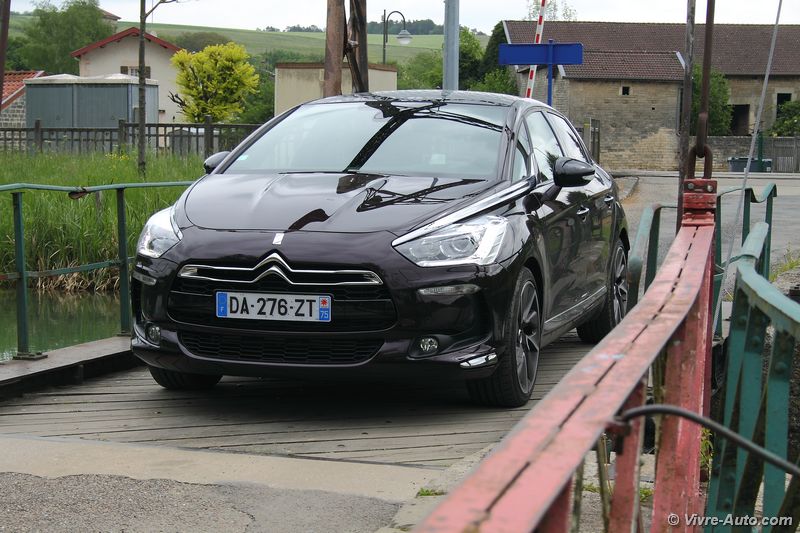est très rigoureux ! Elle s’inscrit parfaitement en courbe avec une direction précise, les prises de roulis sont bien maîtrisées et le freinage est très efficace. Cette voiture peut supporter sans problème encore plus de puissance, peut-être verra t-on un jour au catalogue la version de 270 ch comme sur la Peugeot RCZ R (lire notre essai) ? Pour le confort ne vous attendez pas à une suspension très souple à l’image de Citroën mais plutôt ferme surtout avec la monte pneumatique de 19 pouces, mais malgré cet aspect dynamique, la DS5 reste confortable. Le constructeur annonce une consommation moyenne de 6.7 l/100 km en cycle mixte, durant notre essai la moyenne s’est plutôt établie aux alentours des 8l avec différents parcours. C’est plutôt correct d’autant que nous avons solliciter le moteur sur les petites routes vallonnées.