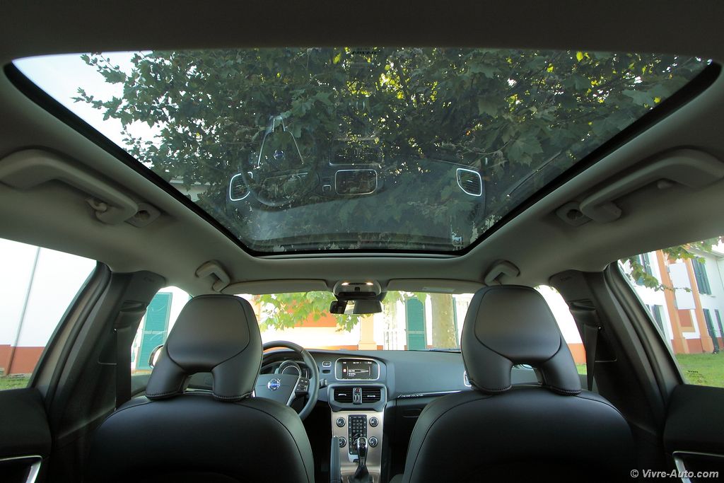 reprises sont bonnes. Les sensations de conduite sont identiques au V40 standard, nous avons bien en main une berline avec un châssis plutôt dynamique et sûre. Le freinage est efficace et le confort bien maîtrisé par les suspensions fermes. De quoi qualifier cette voiture d’excellente routière. Mais même si son look porterait à croire qu’il puisse emprunter les chemins difficiles d’accès, ce n’est pas le cas. Le V40 Cross Country ne dispose d’aucune aide à la motricité comme par exemple chez Peugeot avec le Grip Control ou le Traction+ de chez Fiat. Hormis donc sa garde sol plus importante, il reste une simple traction avant. Il existe cependant une version AWD quatre roues motrices, mais réservés aux moteurs essences T4 (180ch) et T5 (245 ch). Autant dire qu’en France, ces versions seront quasi inexistantes sur nos routes. Tout au long de notre essai, nous avons retenus une consommation moyenne de 6,5 l/100 km avec un mixte 30% ville 70% routes. On n’oubliera pas d’indiquer que ce V40 est le véhicule le plus sûr de sa catégorie. Bardé d’équipements de sécurité dont on citera le City Safety offert de série dès la première finition, qui anticipe les collisions avec un freinage automatique jusqu’à 50 km/h et l’airbag pour les piétons !