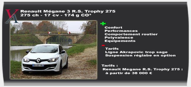 Avec cette série limitée, Renault Sport nous démontre encore une fois que leurs ingénieurs maîtrisent parfaitement le sujet. La Mégane Trophy 275 est une réussite et se montre polyvalente. Reste à débourser les 38.000€ ou 42.500€ avec les options et les 2.200€ de malus pour se la procurer…
