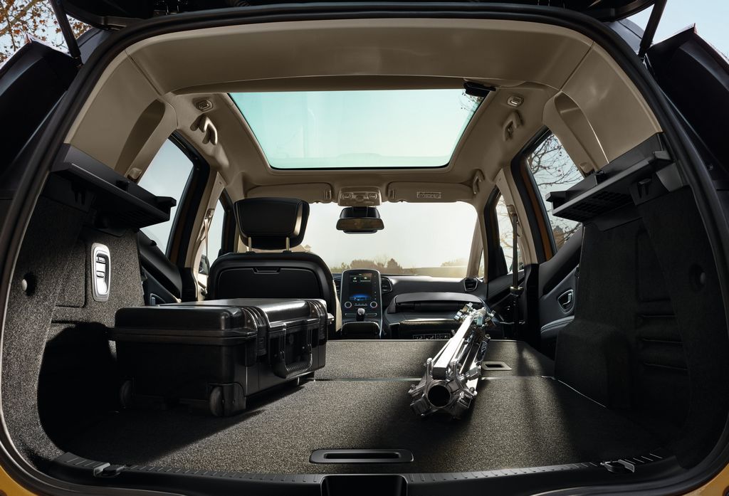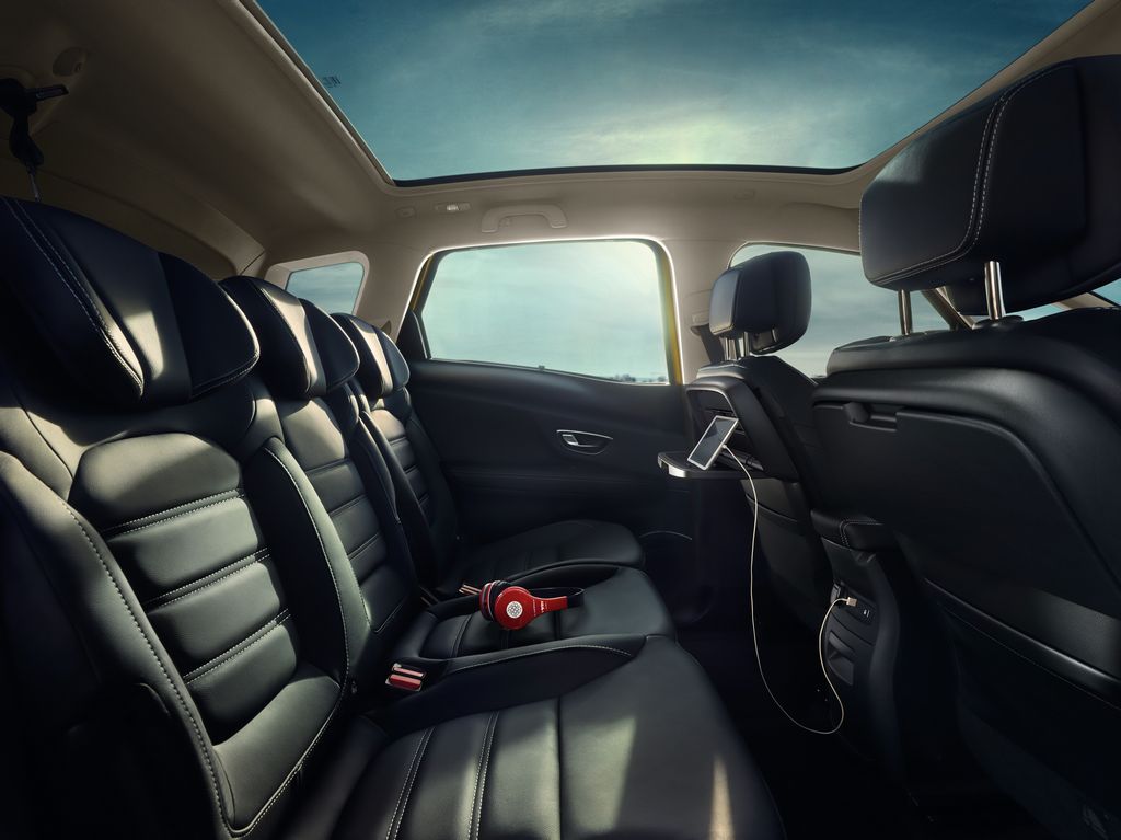 Pour la sécurité, le monospace compacte se dote d’un freinage d’urgence, d’un détecteur de fatigue, la reconnaissance des panneaux, un régulateur de vitesse adaptatif ainsi qu’un assistant au maintien dans la file. Le coffre offre 572 litres de chargement, les sièges individuels de la seconde rangée sont coulissant et se rabattent via une commande électrique comme sur l’Espace.