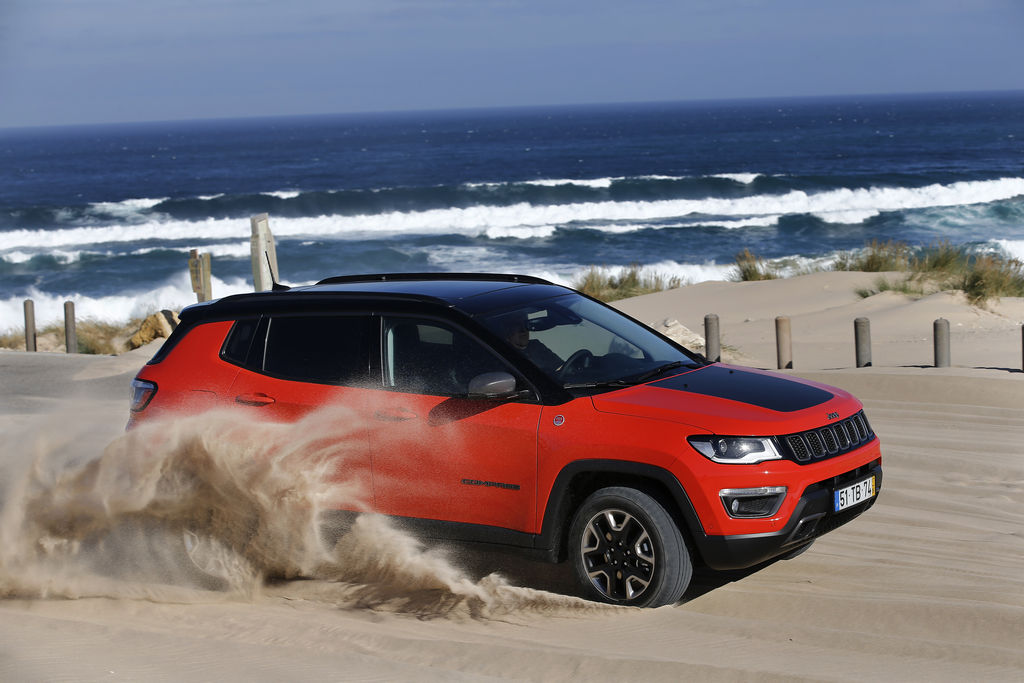 Positionné entre le Renegade et le Cherokee, le nouveau Jeep Compass est un SUV compact qui vient renforcer la présence du constructeur sur le segment. Reposant sur la plateforme du Renegade, il mesure 4,40 mètres de long. Reconnaissable facilement grâce à sa calandre à sept fentes, le Compass revendique sans problème un style de baroudeur. Pour renforcer encore plus cette image, la finition haute Trailhawk augmente la garde au sol de 2,5 cm et apporte des protections de carrosserie supplémentaires.
