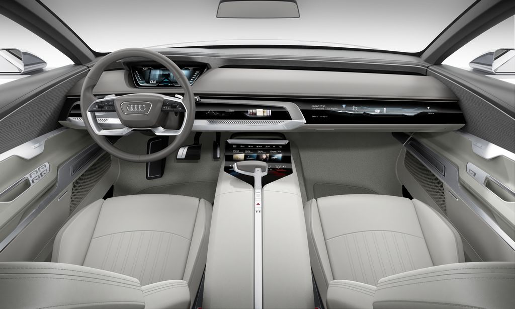 A bord, on fait face à un aperçu du poste de conduite numérique du futur, des écrans à haute résolution et trois miroirs produisent une scène virtuelle avec trois niveaux permettant un affichage complet des informations. Tout est mis en ouvre pour faciliter la vie du conducteur et des occupants au quotidien comme la gestion des appuie-têtes arrière si un passager est présent ou non. Le luxe du futur est également mis en avant avec des matériaux de haute qualité tel que l’aluminium ou l’emploi d’un cuir « Passion » souple sur les surfaces d’assise et les dossiers, le tableau de bord, la console sur le tunnel central et les accoudoirs.