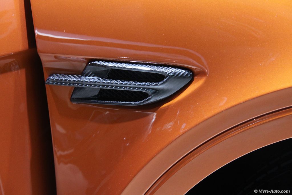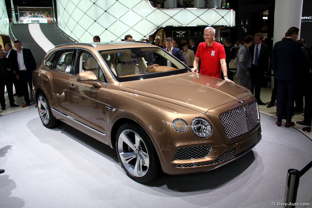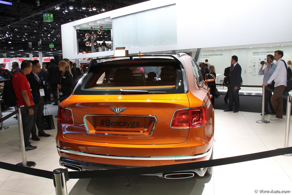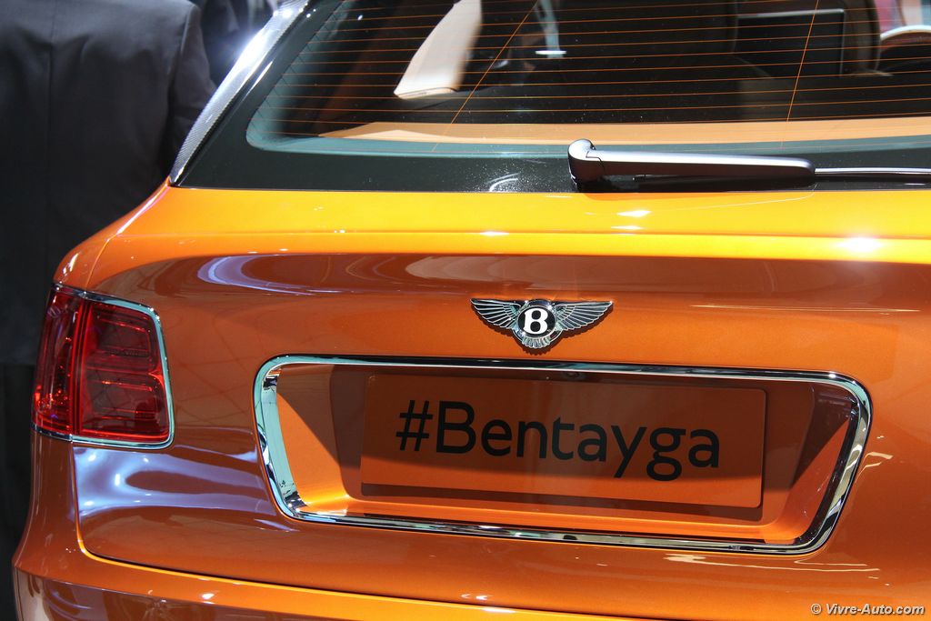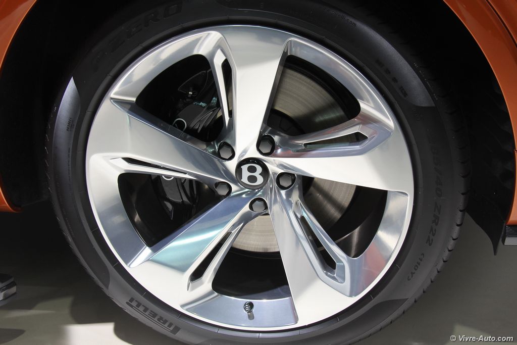 optiques avant, la calandre, ou les feux arrière. Si l’avant n’est pas forcément synonyme de discrétion, la poupe apparaît bien plus sobre. Long de 5,14 mètres il affiche des dimensions plus généreuses, hormis la hauteur, que l’Audi Q7 sur lequel il repose. A bord, la planche de bord nous rappelle celle de la Continental GT, le luxe est bien sûr au rendez-vous avec des matériaux des plus nobles comme le bois, l’aluminium ou des cuirs haut de gamme. Plusieurs combinaisons sont possibles, alliant de nombreuses ambiances au petits détails comme la montre Breitling en passant par les tapis de sol.