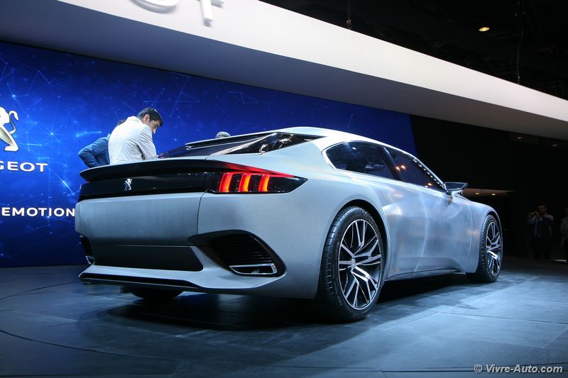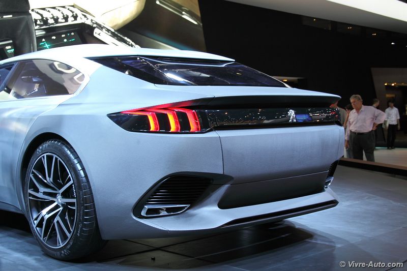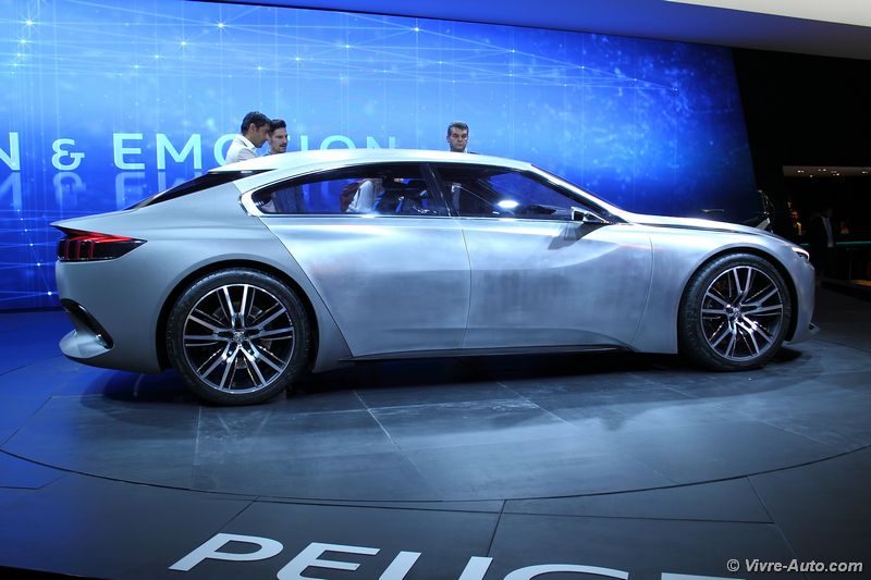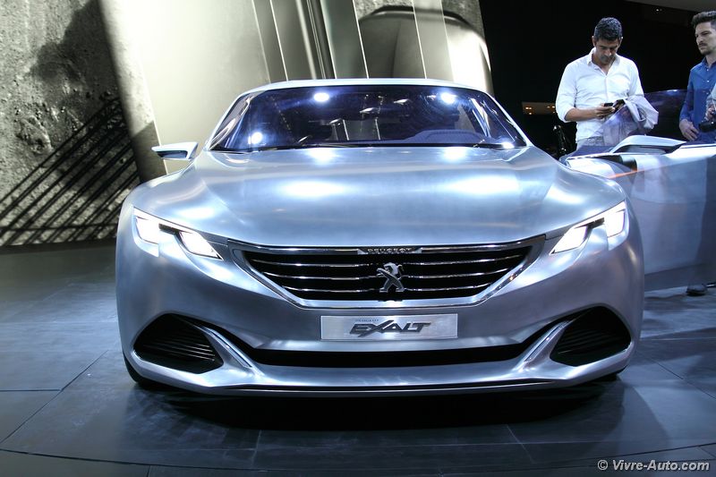Présenté au salon de Pékin en avril 2014, le concept Peugeot Exalt revient sur les devants de la scène au mondial de Paris mais avec quelques retouches. Il préfigure ce que serait une berline aux allures de coupé si le constructeur lançait un modèle du genre. Rappelons que le modèle haut de gamme du lion est la 508 et que malheureusement la 607 ne connait pas de successeur. Initié par le concept Onyx de 2012, l’Exalt emploie de l’acier brut pour laisser toute la matière exprimer les lignes du véhicule. Sur le concept de Pekin, la partie arrière destinée à diminuer l’aérodynamisme était rouge, à Paris elle est grise. A bord, on retrouve du textile et du cuir mis en oeuvre par un processus optimisant la gestion des ressources. Le textile est mis en forme à l’aide de pince présentant ainsi des plis nets et sans couture. Le bois employé est issus de journaux recyclés. Enfin, le coffre accueil l’Hybrid-kick, une sorte de trottinette électrique. L’Exalt dispose d’un moteur 1.6l THP de 270 ch associé à un moteur électrique de 50 kW sur les roues arrière. Cette technologie Hybrid4 développe ainsi une puissance cumulée de 340 ch. L’avenir nous le dira, mais une nouvelle berline ne serait pas de trop dans la gamme Peugeot, qui sait…