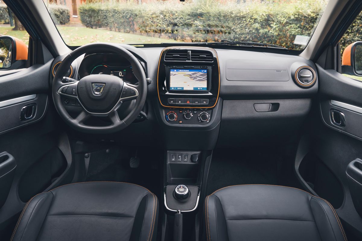 L’un des tours de force de cette Spring Electric réside dans son espace intérieur. Malgré ses dimensions réduites, elle accueille confortablement quatre adultes et propose le meilleur volume de coffre de sa catégorie avec 300 litres (sans compter l’espace sous le plancher pour la roue de secours optionnelle). À l’avant, l’habitacle est simple mais fonctionnel, intégrant des équipements modernes comme le système multimédia Media Nav avec un écran tactile de 7 pouces, compatible avec Apple CarPlay et Android Auto. De nombreux rangements sont répartis dans l’habitacle, offrant un volume total de 23 litres supplémentaires pour les petits objets du quotidien.