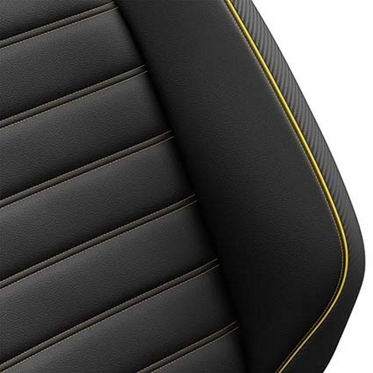 • Volant et levier de vitesse avec surpiqûres jaunes