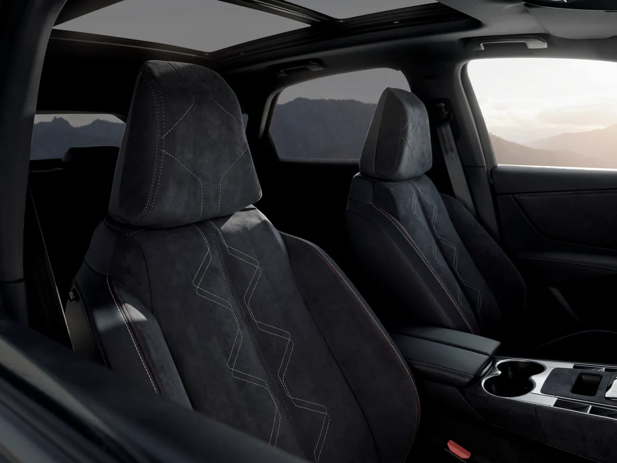 L’habitacle n’est pas en reste et fait la part belle à l’Alcantara®, un matériau prisé en compétition pour son grip et son aspect haut de gamme. Ce revêtement habille les sièges, la planche de bord et les panneaux de porte, le tout rehaussé par des surpiqûres aux couleurs exclusives.
