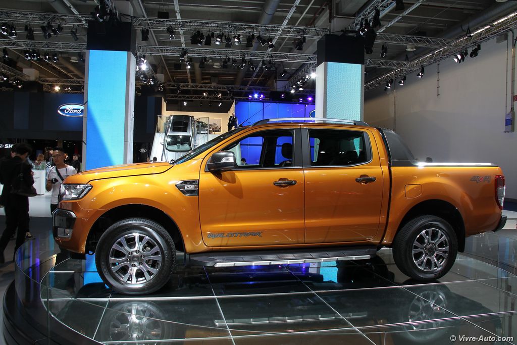 Côté technique, le Ford Ranger 2016 logera sous son capot la nouvelle version du bloc Diesel 2,2l TDCi déclinée en deux niveaux de puissances 130 ch ou 160 ch (contre 152 ch et 150 ch). Un stop&start est maintenant associé. Le cinq cylindres Diesel 3,2l TDCi est toujours au programme tout comme la version haut de gamme Wiltrack, exposée ici, au salon de Francfort. Le constructeur indique que les suspensions ont été revu pour un meilleur confort. Disponible en deux ou quatre roues motrices, il affiche une capacité de remorquage de 3,5 tonnes.