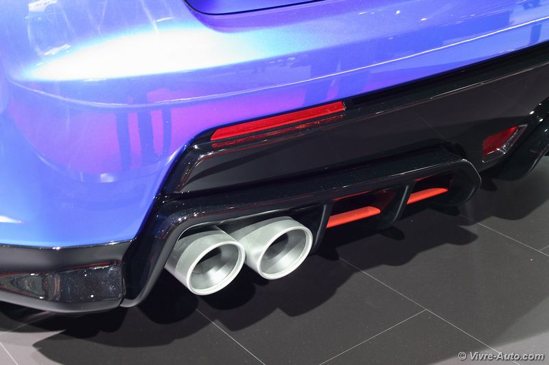 Après nous avoir dévoilé il y a sept mois un concept de la future Civic Type R, Honda présente une dernière version avant la commercialisation définitive, début 2015. Lorsque vous accéder au stand Honda au salon de Paris, vous êtes obligés de vous arrêter devant ce prototype très expressif ! C’est d’autant plus surprenant que la version définitive sera quasiment proche. Pour le Mondial, la Type R enfile une robe bleuté et conserve son gigantesque aileron doté de feux à LED. Le constructeur indique que son bolide affichera des performances atteintes par aucune des Type R. Sous le capot les ingénieurs ont greffés un bloc essence 2 litres i-VTEC de 280 ch respectant les normes Euro 6 associé à une boîte mécanique à six rapports. Le régime maximal est fixé à 7.000 tr/mn. Les effets de couple seront réduits par un nouveau système de direction et les amortisseurs adopteront un système adaptatif. Le conducteur pourra actionner un bouton « +R » situé à côté du volant, afin de rendre la voiture encore plus dynamique en augmentant la puissance et le couple. Ce mode modifie également la direction et les suspensions. Rendez-vous début 2015 pour un essai détaillé.