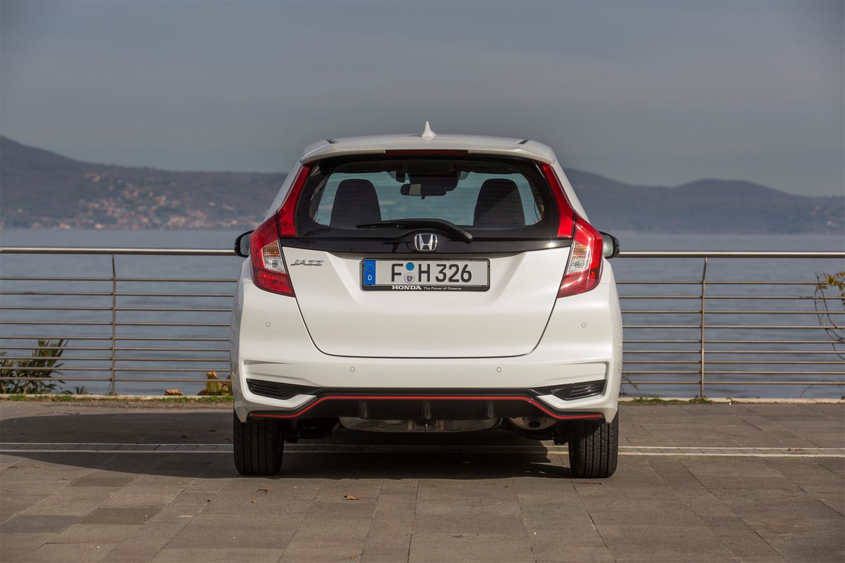 Honda Jazz Dynamic 1.5l i-VTEC 2018Pour accompagner ce nouveau moteur, Honda introduit la version Dynamic, qui se veut l’expression la plus sportive de la gamme. Elle se distingue visuellement par une lame avant plus fine sous la calandre et un diffuseur arrière en trois parties, tous deux soulignés par des accents rouges sportifs. L’ensemble est complété par des phares LED de série, des lames latérales et des jantes en alliage de 16 pouces finies en noir brillant, conférant à la Jazz une posture beaucoup plus déterminée sur la route. À l’intérieur, cette ambiance spécifique se prolonge avec une sellerie exclusive à rayures et des surpiqûres orange sur le volant et le levier de vitesse gainés de cuir.