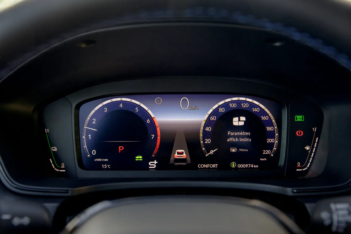 Sous le capot, on retrouve le groupe motopropulseur hybride e:HEV de Honda, mais avec une mise au point spécifique. La grande innovation est la technologie S+ Shift. Ce système simule électroniquement les changements de rapports pour offrir une sensation de conduite proche d’une boîte séquentielle, gommant l’effet « linéaire » habituel des hybrides. Couplé à différents modes de conduite, ce système permet de passer d’un cruising silencieux en ville à une conduite dynamique et sonore sur route sinueuse.
