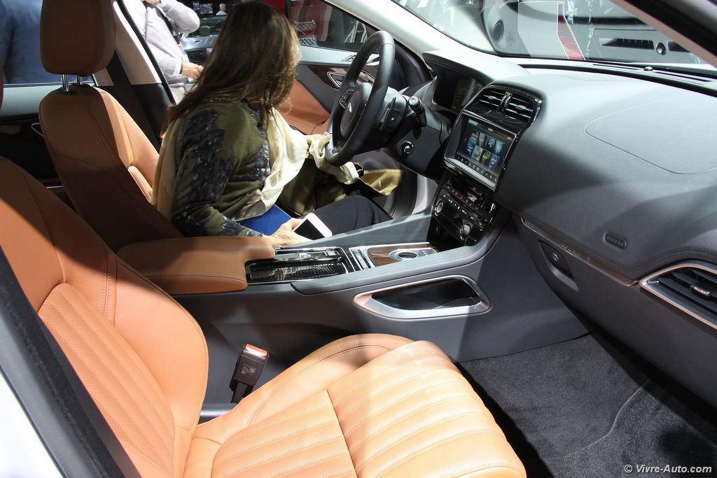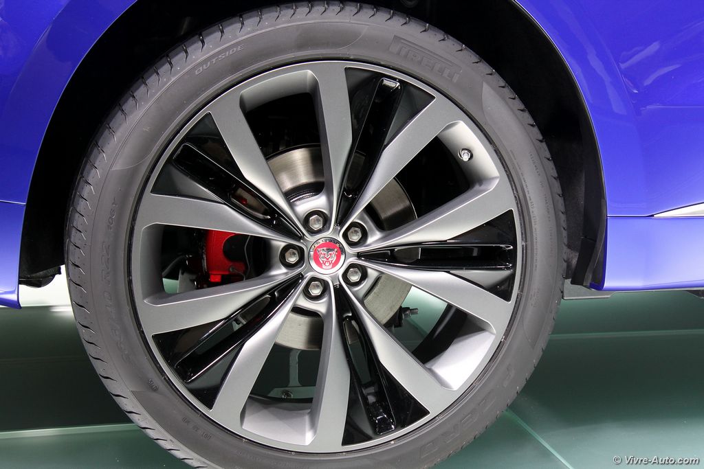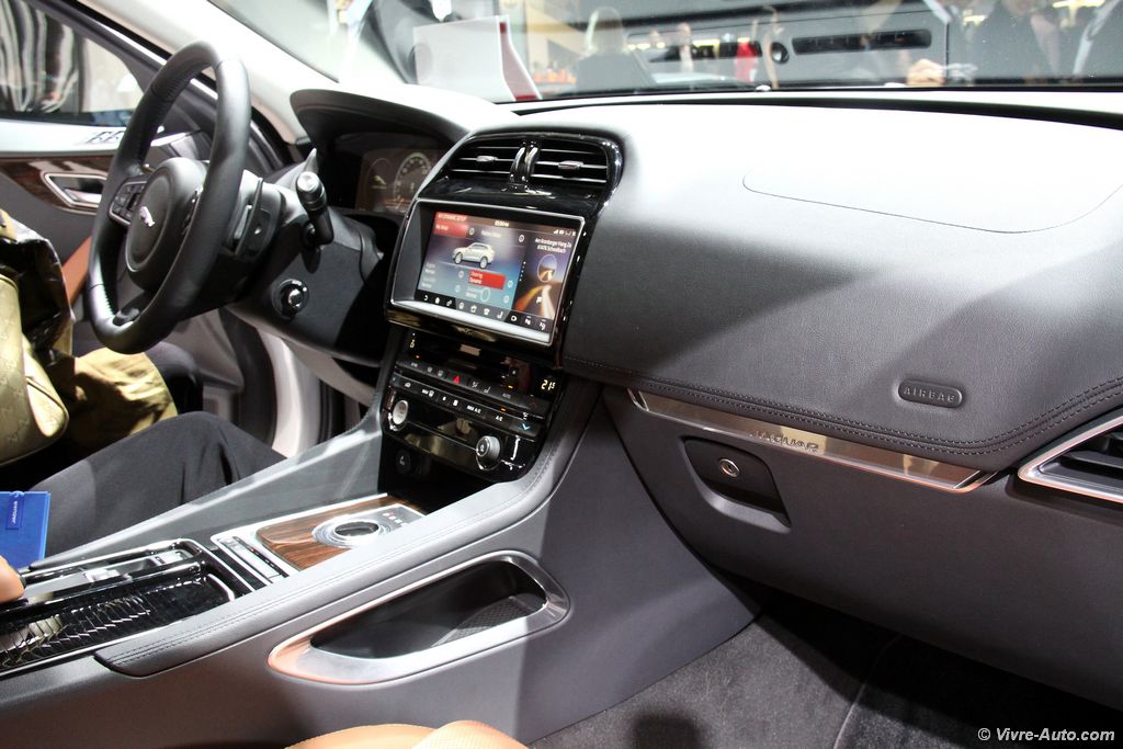 Esthétiquement proche du concept, le F-Pace affiche à la fois un gabarit compact mais surtout une ligne générale qui ne fait pas massif comme c’est souvent le cas. Le style est très en adéquation avec les codes de design du constructeur comme la calandre rectangulaire, les entrées d’air barrées ou les feux effilés. Difficile de se faire une idée à partir de photos officielles, pour notre part après l’avoir observé sur place, nous sommes unanimes, c’est un très beau SUV. A bord, la planche de bord nous rappelle l’univers de la berline XE, le F-Pace peut recevoir un grand écran tactile de 10,2 pouces. Le conducteur pourra consulter les informations via un écran HD de 12,3 pouces derrière le volant ou via un affichage tête haute laser. Le coffre offre un volume de chargement de 650 litres, son hayon électrique peut s’ouvrir grâce à un mouvement du pied. Pour les sportifs qui ne savent que faire de leur clef dans le cadre d’une activité sur l’eau par exemple, Jaguar fournit un bracelet étanche antichoc qui remplace temporairement la clef d’origine, qui peut être laissée à l’intérieur du SUV.