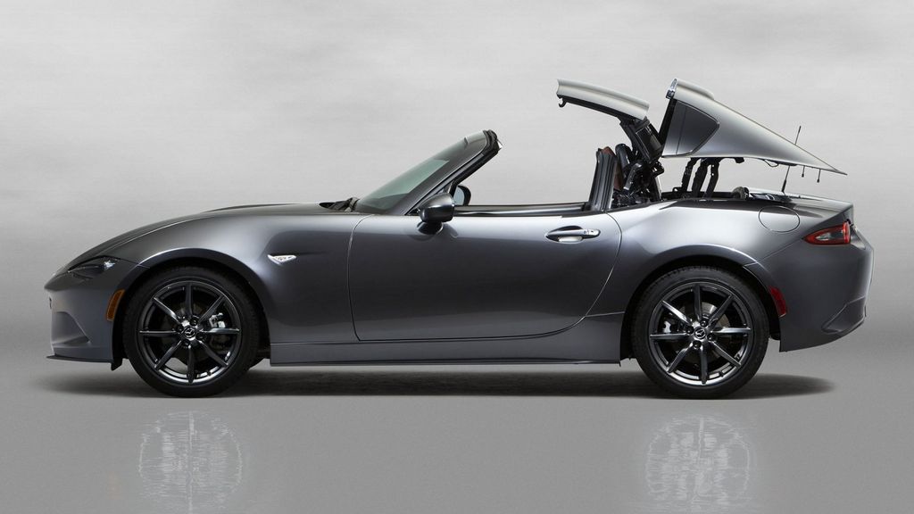 Cette nouvelle déclinaison qui porte les initiales RF pour Retractable Fastback échange son toit souple contre une toute nouvelle silhouette inédite. Le toit rétractable à commande électrique s’ouvre et se ferme jusqu’à 10 km/h. Il a l’avantage de ne pas empiéter sur le volume du coffre qui reste inchangé. La partie arrière qui change radicalement le look du cabriolet dispose, elle aussi, d’une vitre rétractable. Pour l’occasion, le Mazda MX-5 RF s’offre une nouvelle teinte de carrosserie exclusive, le Machine Grey.