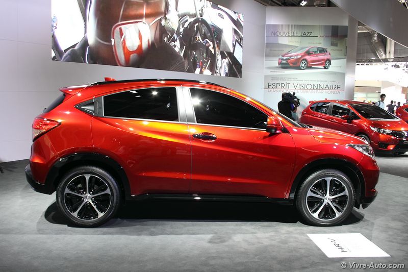 Sur le stand Honda, un prototype préfigure le futur SUV compact HR-V. En attendant sa présentation officielle pour l’été 2015, nous pouvons d’ores et déjà découvrir l’extérieur, l’habitacle étant dissimulé derrière des vitres teintées. De même dimensions qu’un Renault Captur, il ne conserve pas les lignes cubiques de la précédente génération et opte pour un design net et dynamique qui évoque celui d’un coupé. Le constructeur indique que l’espace à bord est très vaste grâce notamment à l’implantation du réservoir à carburant en position centrale. Le nouveau SUV sera également doté d’une modularité qui permettra d’exploiter l’ensemble de l’espace intérieur. Sous le capot, seront proposés deux motorisations, un 1.5 i-VTEC essence et un bloc Diesel 1.6 i-DTEC de dernière génération.