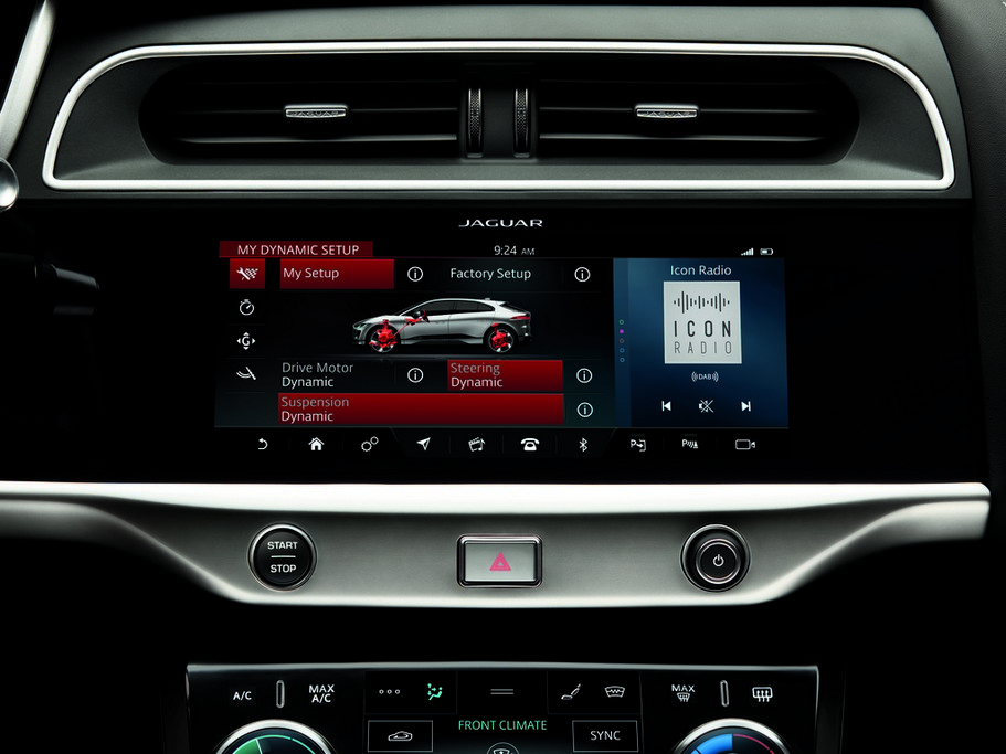 Doté de deux moteurs électriques positionnés sur chaque essieu, le Jaguar I-Pace est en transmission intégrale. Lourd de 2,2 tonnes, il est caractérisé par un centre de gravité bas, une répartition des masses équitable (50/50) et recevra une suspension adaptative. Développant une puissance cumulée de 400 ch et un couple de 696 Nm, il ne réclame que 4,8 secondes au 0 à 100 km/h. La vitesse maximale est cependant bridée à 200 km/h. D’une puissance de 90 kWh, la batterie lithium-ion offre une autonomie de 480 km selon le cycle WLTP. Une recharge totale demande 10 heures sur une prise domestique 7 kW quand un chargeur rapide permet de récupérer 80% de la capacité en seulement 45 minutes.