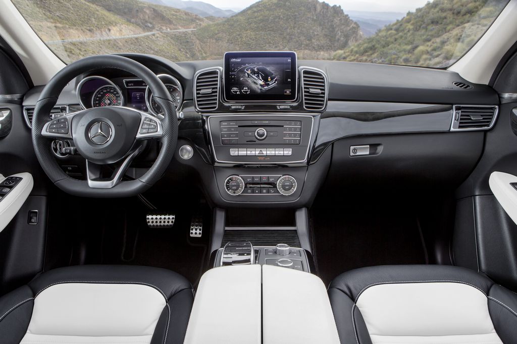 Sous le capot, les motorisations voient leurs consommations baisser de 17% en moyenne. En essence, le GLE 400 et son V6 ne bouge pas, le GLE 500 équipé du V8 gagne 27 ch (435 ch) et les versions AMG sont désormais disponibles en deux niveaux de puissance : GLE 63 (557 ch) et GLE 63 S (585 ch). En Diesel, le quatre cylindres de 204 ch (GLE 250 d) et le V6 de 258 ch (GLE 350 d) sont toujours au programme mais associés à une nouvelle boîte automatique à 9 rapports (9G-Tronic). Mais la grosse nouveauté, c’est la nouvelle version hybride rechargeable GLE 500e. Le V6 essence de 333 ch côtoie un bloc électrique de 116 ch pour une puissance cumulée de 442 ch et un couple de 650 Nm. Une batterie de 8,8 kWh autorise le SUV à rouler jusqu’à 130 km/h en tout électrique pendant 30 km. Il est ainsi homologué à 3,3 l/100 km et 78 g/km de CO². Cette version vous rappelle quelque chose ? Oui le nouveau BMW X5 eDrive40e présenté il y a quelques jours qui sera son principal rival !