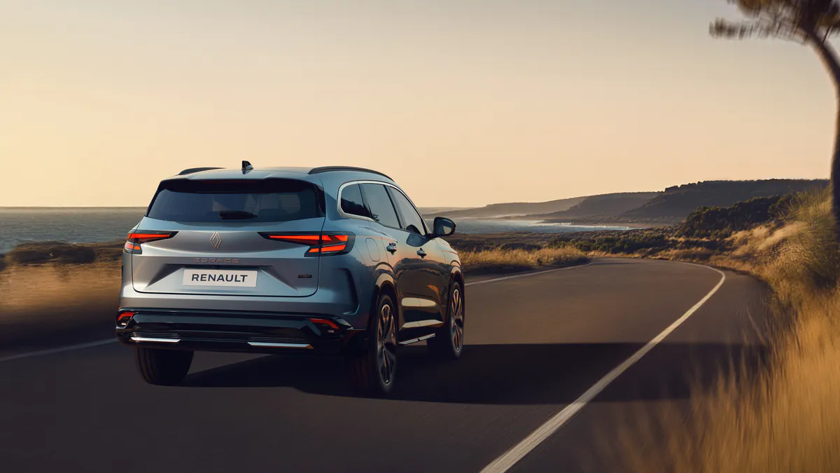 L’identité lumineuse évolue radicalement avec l’adoption de feux diurnes en forme de demi-losange intégrés au bouclier. À l’arrière, le dessin intérieur des optiques, inspiré du tangram, adopte un effet « glaçon flottant » lorsqu’elles sont éteintes, une signature visuelle partagée avec le Renault Rafale. Une nouvelle teinte de carrosserie, le Gris Bleuté Baltique, fait également son apparition.