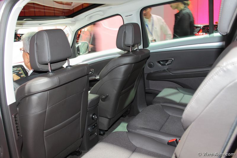 La modularité est complètement revue avec l’intégration dans le plancher des sièges de la deuxième et troisième rangée. Ils se replient individuellement ou tous ensemble en un clic depuis l’écran tactile ou depuis le coffre. Ce dernier offre un volume de chargement de 660 dm3 en configuration cinq places, le hayon peut s’ouvrir d’un simple mouvement de pied sous le bouclier et le degré est réglable, pratique pour les parking souterrain.
