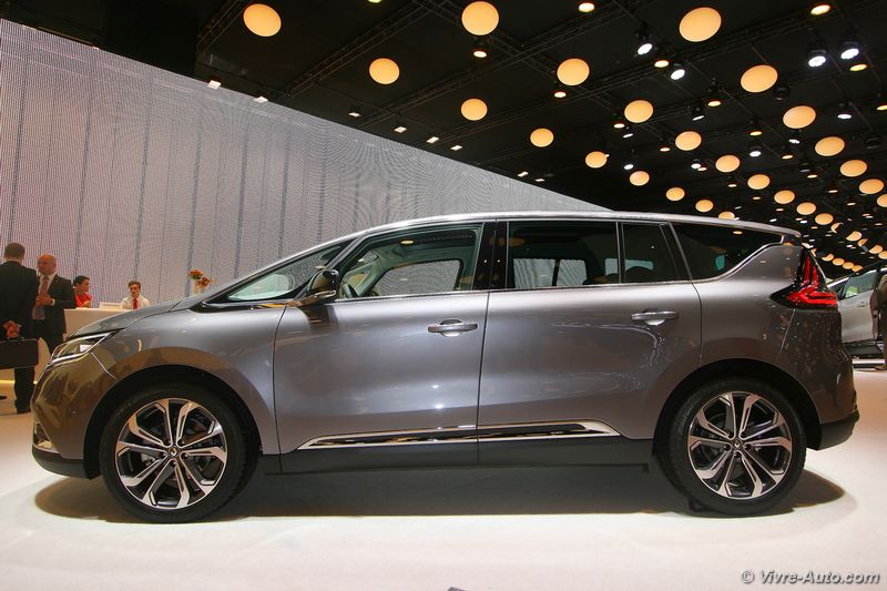 Qu’on se le dise, l’une des grosses nouveautés attendue lors du salon de Paris c’est le nouvel Espace. Pour sa cinquième génération, Renault chamboule tout en lui conférant un style très dynamique et surtout très porté crossover. « Il a de la gueule » on peut le dire. Disponible en configuration 5 ou 7 places, il mesure 4.85 m de long et 1.87 m de large. On est très proche des dimensions du Grand Espace 4, sauf pour la hauteur qui est réduite de 12 cm. Le poids a été retravaillé avec un gain de 250 kg sur la balance.