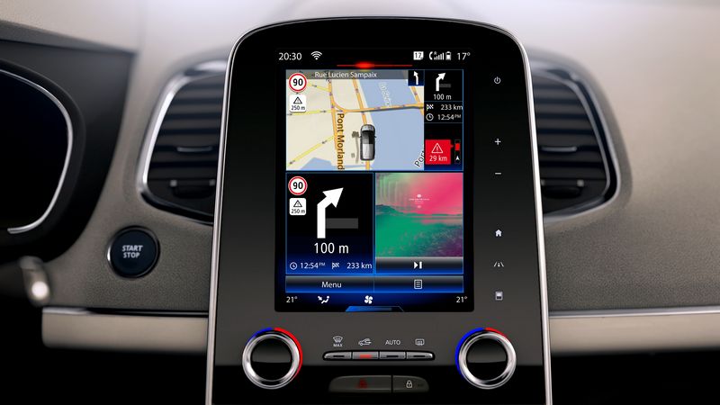 Les ingénieurs ont intégrés la technologie 4Control sur l’Espace, c’est une première pour un véhicule de cette catégorie. Déjà présent sur la Laguna, le châssis 4Control gère le braquage des roue arrières offrant une excellente stabilité sur route mais aussi une meilleur agilité dans les manœuvres à basse vitesse. La fonction Mutil-Sense offre cinq modes de conduite : Eco, Confort, Sport et Perso librement paramétrable. Suivant le mode sélectionné, les paramètres de la réponse du moteur, des passages de vitesse, du système 4Control, de la suspension et de la direction vont être modifiés. Mais le système va encore plus loin en jouant sur la tonalité de l’éclairage intérieur (vert, bleu, blanc, rouge, violet), les informations affichées et la couleur des instruments, la sonorité du moteur, l’intensité et la fréquence des massages des sièges et la climatisation.