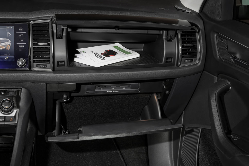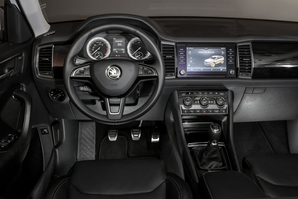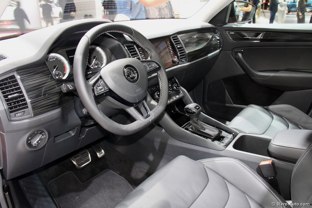 A bord, l’ADN Škoda est lui aussi conservé avec une planche de bord bien présentée et ergonomique. Si le Virtual Cokpît de son cousin, le Volkswagen Tiguan, n’est pas repris, le tchèque peut accueillir au centre de la planche de bord un écran tactile compatible MirrorLink. Le niveau d’équipement est assez conséquent, pour le confort les sièges à réglages électriques peuvent être chauffants ou ventilées, quant à la sécurité, le SUV peut être doté d’un régulateur de vitesse adaptatif, un détecteur de fatigue, un freinage d’urgence, un détecteur d’angle mort ou une caméra à 360°. Un équipement inédit fait son entrée, il s’agit d’une protection de porte qui se déploie automatiquement à l’ouverture empêchant le bord d’être en contact direct.