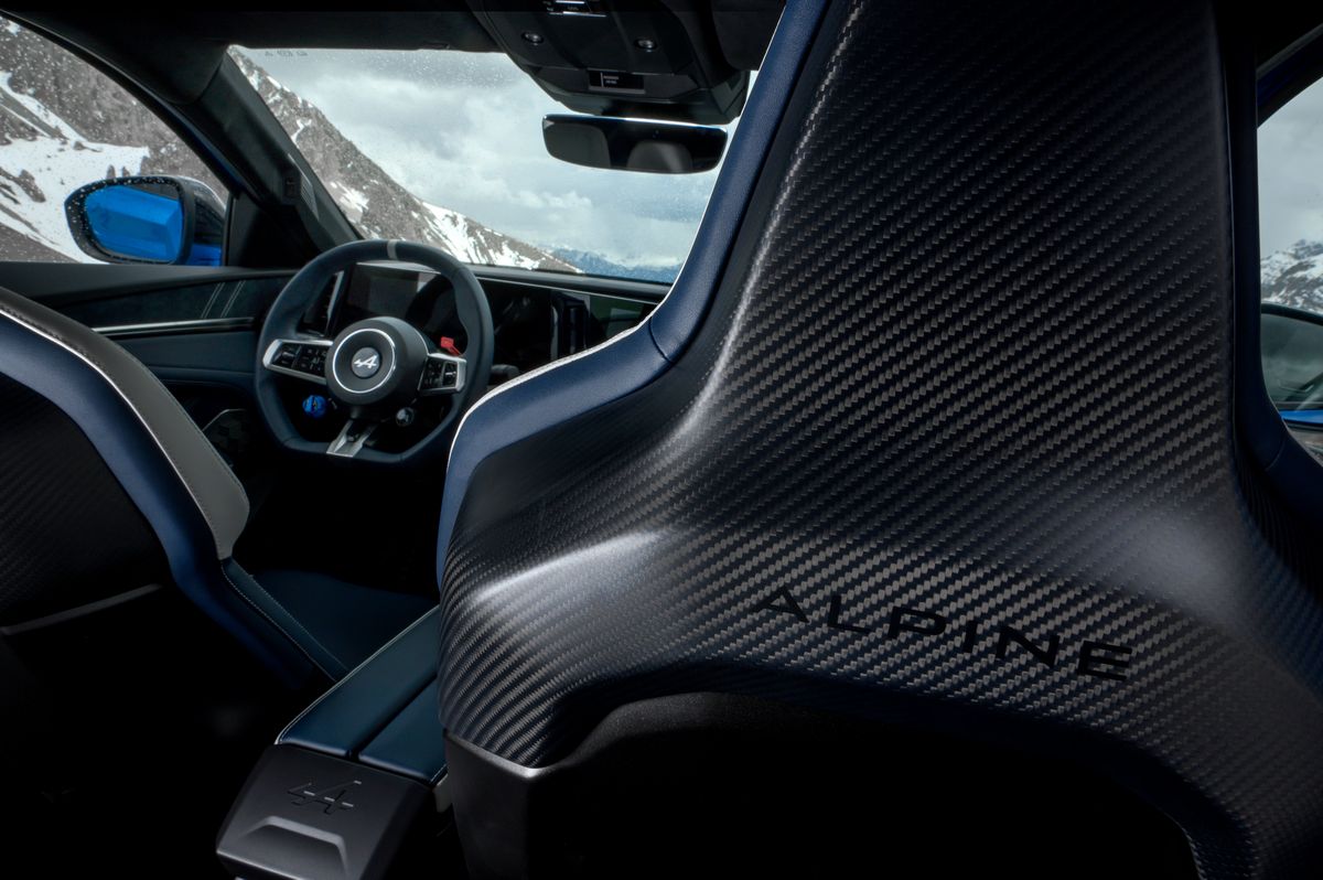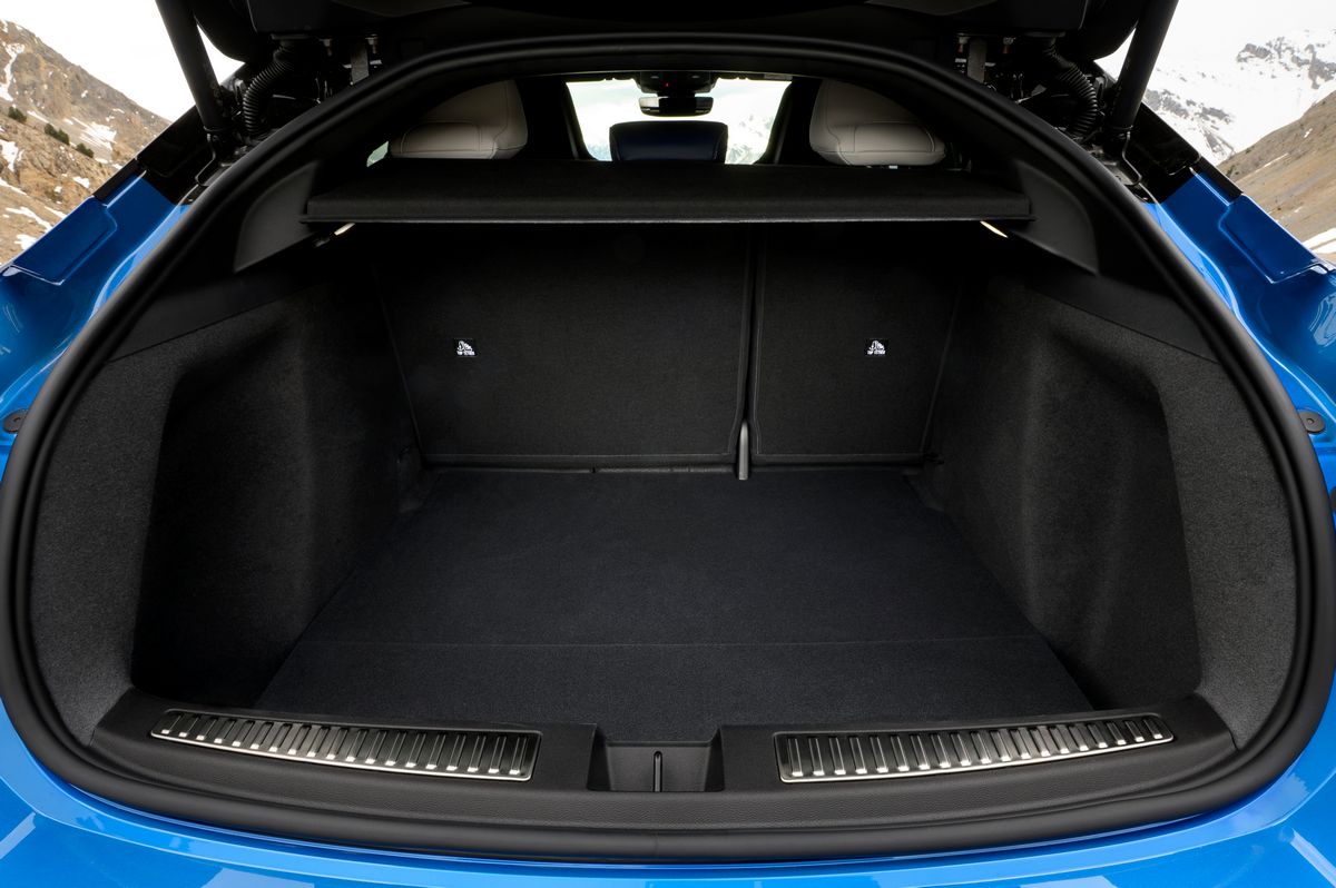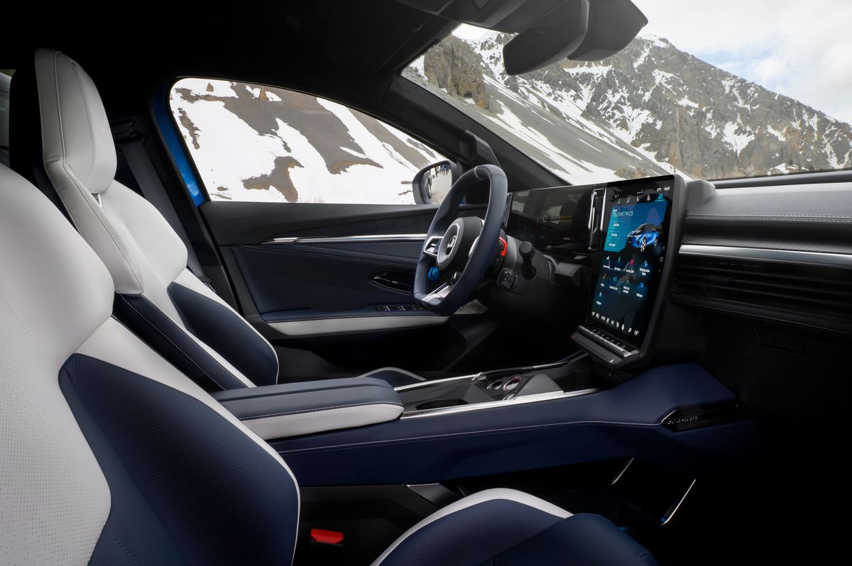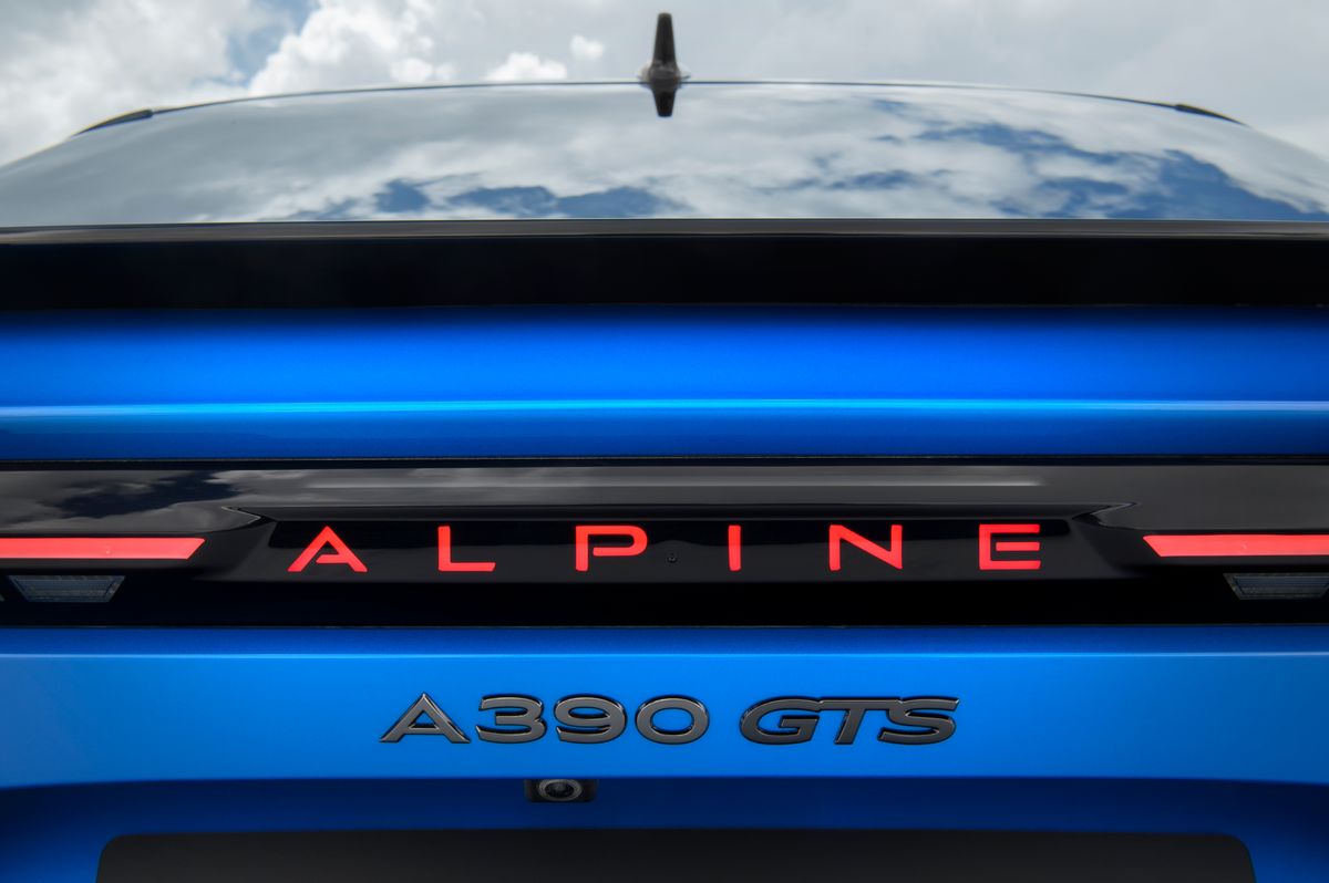 Le style de l’A390 mêle fluidité et caractère avec des dimensions généreuses mais maîtrisées : 4,615m de long, 1,885m de large et 1,532m de haut. Sa silhouette de coupé est soulignée par une lunette arrière en forme de visière de casque et une signature lumineuse unique baptisée « Cosmic Dust », composée d’une nuée de triangles illuminés évoquant une comète. L’aérodynamique a été particulièrement soignée, avec une chute de pavillon à 17° et un diffuseur inspiré des prototypes d’endurance du Mans. Clin d’œil aux passionnés, la silhouette de la légendaire A110 est discrètement gravée dans un coin du pare-brise.