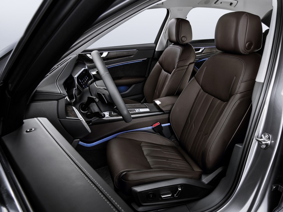 Au lancement, cinq moteurs seront proposées développant entre 204 et 340 ch. En essence a été retenu un V6 3.0 TFSI de 340 ch et 500 Nm de couple associé à une boîte S tronic à sept rapports et à la transmission intégrale quattro. En Diesel l’offre débute avec un quatre cylindres 2.0 TDI de 204 ch et 400 Nm, combiné à la même boîte de vitesses. Vient ensuite un V6 TDI décliné en deux niveaux de puissance 231 ch et 500 Nm ou 286 ch et 680 Nm obligatoirement associé à la boîte tiptronic à huit rapports et la transmission intégrale quattro. Tous les moteurs sont dotés de la technologie hybride MHEV qui inclut une batterie de 48 Volts (12 Volts sur le quatre cylindres) permettant à l’Audi A6 d’évoluer en roue libre entre 55 et 160 km/h. Le gain sur la consommation serait de l’ordre de 0,7 l/100 km.