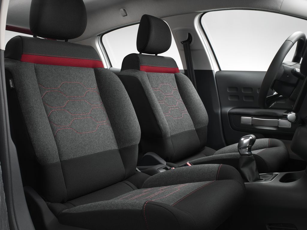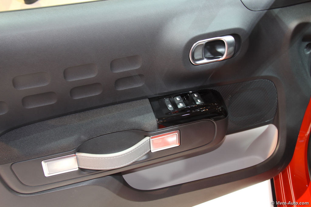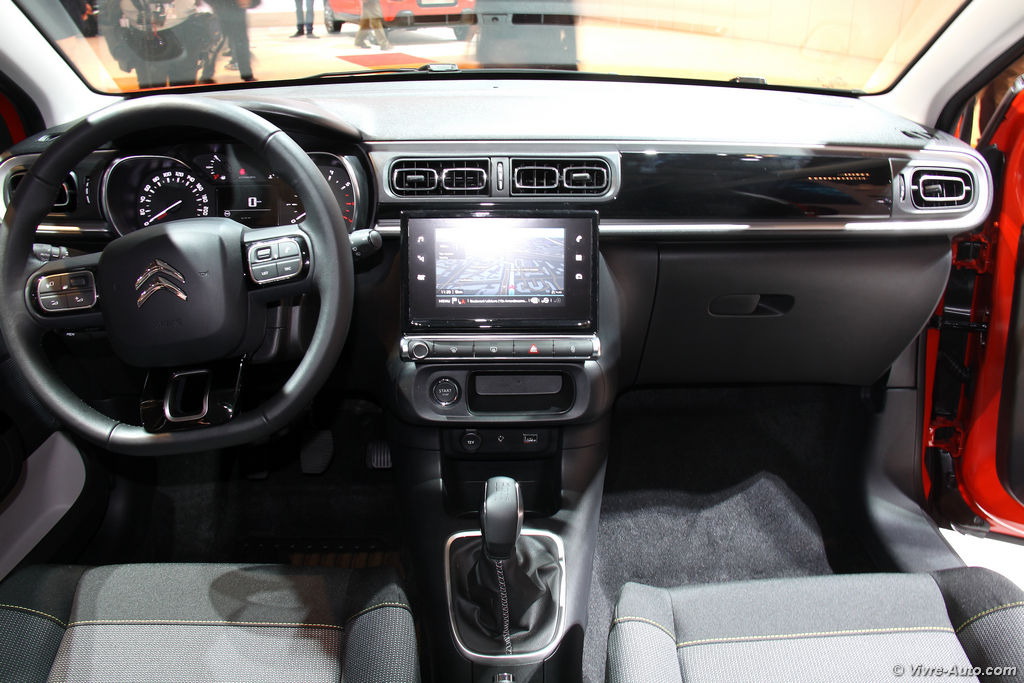 Citroën C3 2016A bord, la présentation est en accord avec l’extérieur, avec une planche de bord aux lignes horizontales et des poignées de porte en lanière qui nous font penser aussi au C4 Cactus. Quatre ambiances intérieures sont proposées interagissant sur la sellerie, les garnissages et certains décors. L’ensemble des commandes sont pilotables depuis une tablette tactile de 7 pouces, compatible MirrorLink, et dotée d’une caméra de recul. Avec un empattement plus long, les passagers arrière seront mieux lotis, avec de l’espace aux jambes supplémentaire. La française se remet à jour côté équipement avec l’apparition d’un détecteur d’angle mort, l’alerte de franchissement de ligne, l’aide au démarrage en côte et une alerte de somnolence. Elle joue aussi la carte de l’exclusivité avec un système inédit baptisé ConnectCam. A l’aide d’une caméra full HD située derrière le rétroviseur intérieur dotée d’un grand angle de 120°, d’une puce GPS et d’un disque dur de 16 Go, le conducteur pourra capturer des photos et des vidéos de 20 secondes pour les partager sur les réseaux sociaux une fois à l’arrêt. Mais l’intérêt principal de cet équipement est de pouvoir conserver une vidéo lors d’un accident.