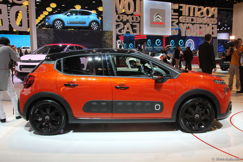 Citroën C3 2016Le constructeur français vient de lever le voile sur une nouveauté majeure, la troisième génération de sa citadine. Afin de gagner plus de part de marché, cette nouvelle venue change radicalement. Ces premières photos vous rappelle quelque chose ?  Le C4 Cactus bien évidemment ! Très fun, cette nouvelle Citroën C3 puise son inspiration auprès du crossover : calandre à double étage, protection de carrosserie airbump, teinte bi-colore… Il n’y a plus rien à voir avec la génération actuelle ! La personnalisation sera un de ses atouts, le catalogue propose neuf teintes de carrosserie qui peuvent s’assortir à un toit peint en blanc, noir ou rouge.