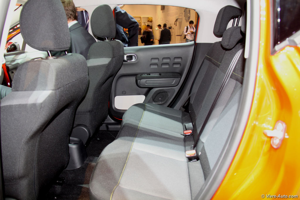 Reposant sur la plateforme de la Peugeot 208, la nouvelle Citroën C3 2016 s’agrandit un peu avec 5 cm de plus en longueur, 2 cm en largeur et 7 cm en empattement soit respectivement 3,99 m, 1,75 m et 2,54 m. Seule la hauteur est réduite de 5 cm (1,47 m). Pas de changement côté coffre avec un volume de chargement semblable de 300 litres.