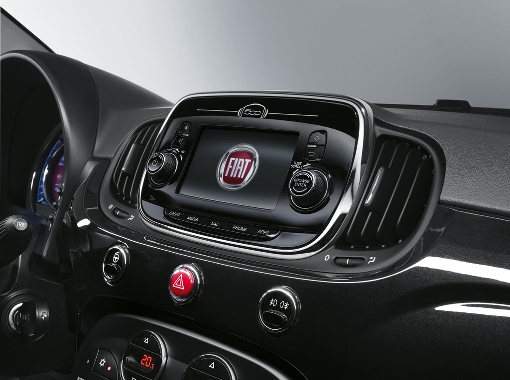 Mais c’est à bord que les plus gros changements s’opèrent, avec l’intégration d’un écran tactile de 5 pouces sur la partie supérieure de la planche de bord. Doté du système multimédia UConnect, il offre dès le premier niveau de finition la radio, les commandes au volant, 6 hauts parleurs, le Bluetooth, et les ports USB et prise Jack. Il se dote également de la navigation ainsi que diverses applications selon les finitions. La personnalisation sera toujours de la partie avec cette Fiat 500 2015, au choix 13 teintes de carrosserie dont les nouveaux Rouge Corail et Bordeaux Opéra, 8 types de jantes de 15 et 16″ et 10 configurations d’intérieur. S’ajoutent aussi des packs incluant des stickers ou modifiant la couleur des coques de rétroviseurs. Sous le capot, rien de nouveau, on retrouve les moteurs actuels, le bicylindres 0,9 l TwinAir de 85 ou 105 ch et le 1,2 l de 69 ch. En Diesel il faudra patienter un peu pour voir au catalogue le 1,3 Multijet II de 95 ch conforme aux normes Euro 6. Sur le plan technique, la mini citadine revoit son amortissement et gagnerait en insonorisation.