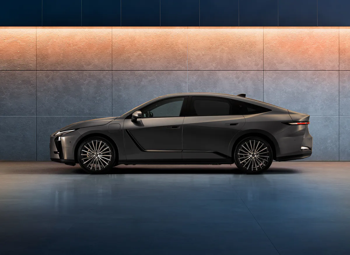 Cette nouvelle génération gagne en prestance avec des dimensions en nette hausse. Construite sur une plateforme Lexus Global Architecture-K repensée, la berline s’allonge de 165 mm pour atteindre une longueur totale de 5 140 mm, tandis que son empattement progresse de 80 mm. Plus large de 55 mm, elle adopte une posture plus basse et plus dynamique, soulignée par une nouvelle signature lumineuse en double L qui deviendra le nouveau symbole de la marque à l’ère de l’électrification.