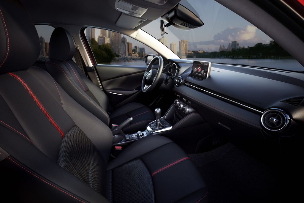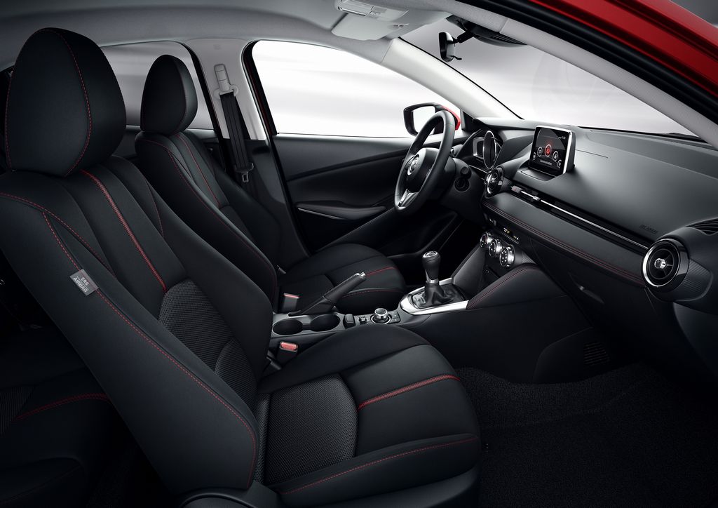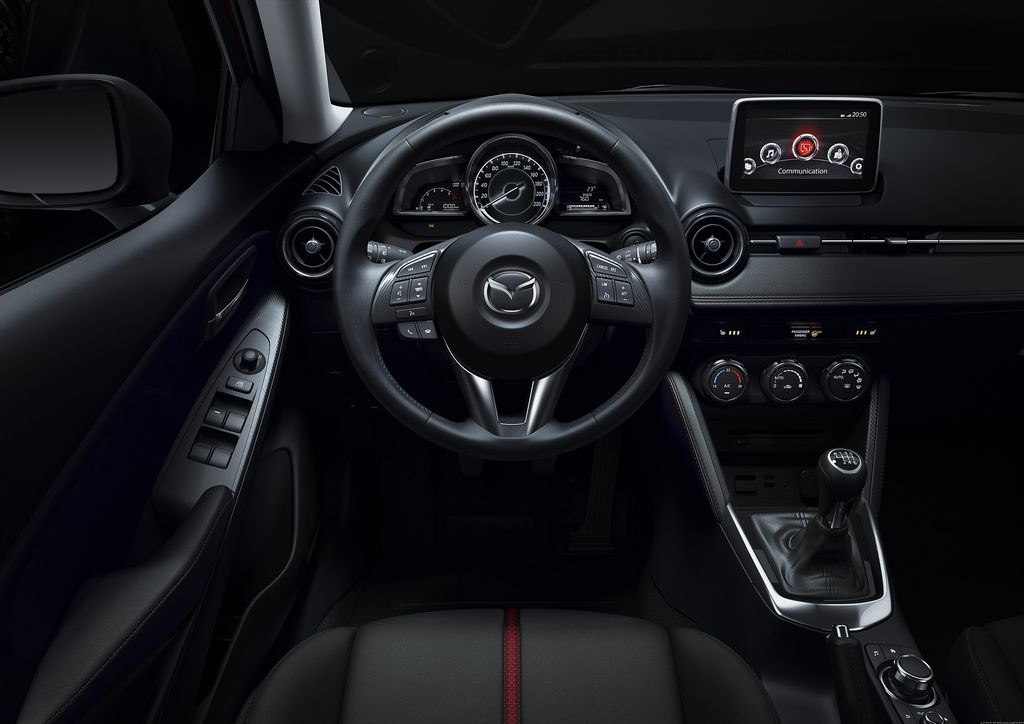 Cette nouvelle citadine embarque une multitudes d’équipements, dont certains réservés au segment supérieur. On retrouve par exemple le MZD Connect, un système multimédia qui permet d’interagir avec son smartphone. En plus des fonctions SMS et GPS, un large contenu de services est accessible, fils d’actualité Facebook et Twitter, 40.000 web radios, podcasts, livre audio… Mais aussi un affichage tête haute (!), des feux de route automatique et des équipements de sécurité (freinage d’urgence, détection d’angle mort, avertisseur de franchissement de ligne, détection d’obstacle en marche arrière…).