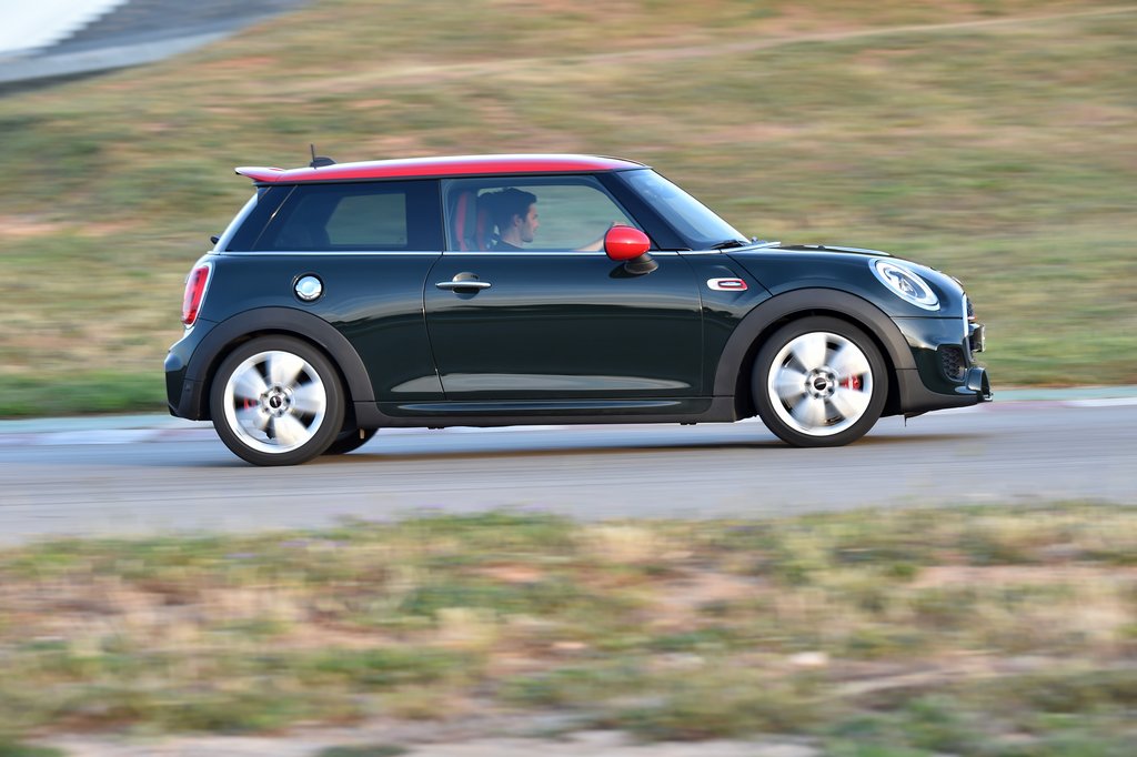 Les liaisons au sol de cette Mini JCW ont été revu afin de coller aux moteur. On retrouve aussi un système de freinage Brembo, des roues an alliage léger spécifiques de 17 pouces, un échappement sport, une direction à assistance électromagnétique et, proposé en option, l’amortissement variable piloté.