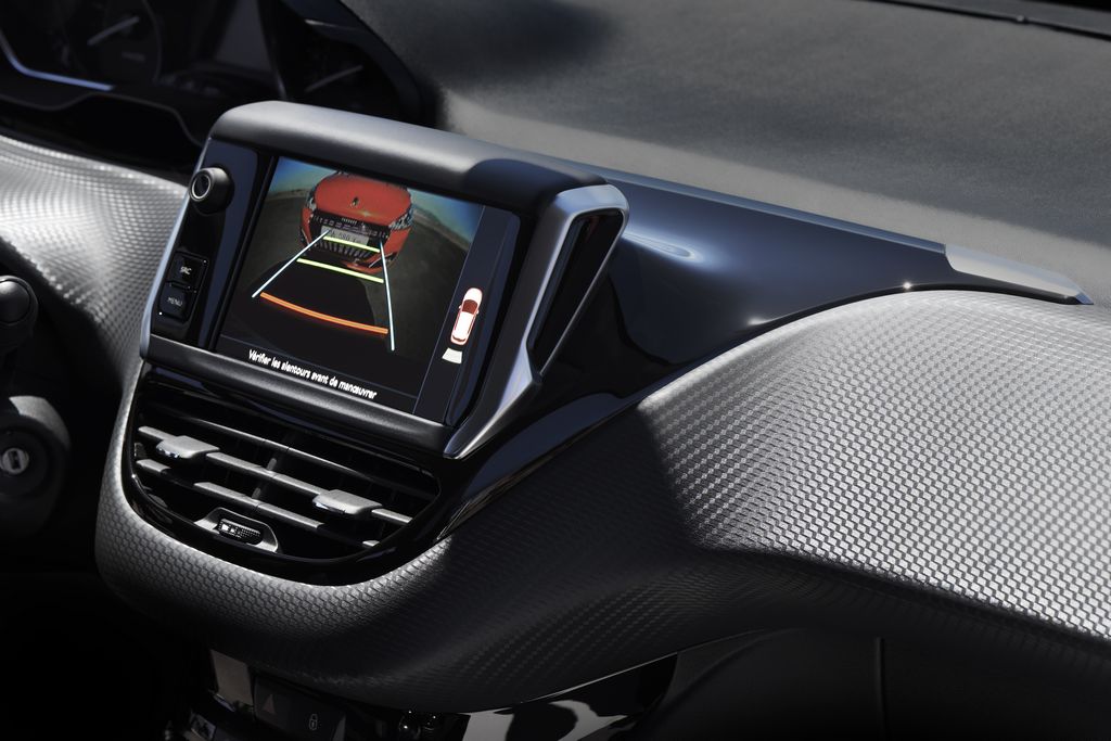 A bord, l’habitacle est conservé avec ce qui caractérise la Peugeot 208, son petit volant et son i-Cokpit. Les ingénieurs ont seulement augmenter la qualité de certains matériaux. Deux nouveaux équipements sont proposés : une caméra de recul et l’Active City Brake autrement dit le freinage d’urgence jusqu’à 30 km/h. Enfin, la partie multimédia et son écran tactile de 7 pouces (80% des ventes actuelles) s’enrichit de la fonction MirrorScreen permettant de dupliquer l’écran de son smartphone comaptible MirrorLink et Carplay.