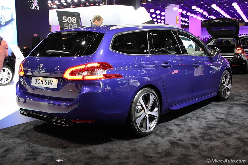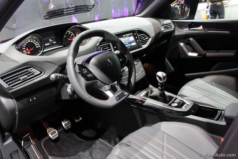 En attendant l’arrivée prochaine de la 308 R, le constructeur présente au mondial une version intermédiaire nommée GT. « La gamme 308 accueille aujourd’hui les versions dynamiques. La 308 GT, en Diesel comme en essence, procure un agrément de conduite en rupture par rapport à la concurrence. » Indique Maxime Picat, directeur général de Peugeot. Disponible en berline et en break, cette déclinaison est proposée avec le moteur essence 1.6 THP de 205 ch associé à une boîte mécanique à six rapports et en Diesel avec le 2.0 BlueHDi de 180 ch en transmission automatique à six rapports. Côté style, la caisse est abaissée de 7 mm à l’avant et de 10 mm à l’arrière, les jantes de 18 pouces Diamant sont spécifiques et chaussées de pneumatiques Michelin Pilot Sport 3. Les coques de rétroviseurs sont en noir laqué, tout comme le diffuseur arrière, qui se voit pour l’occasion greffé de deux canule d’échappement. A l’intérieur rien ne bouge hormis l’ajout de surpiqûre rouges.