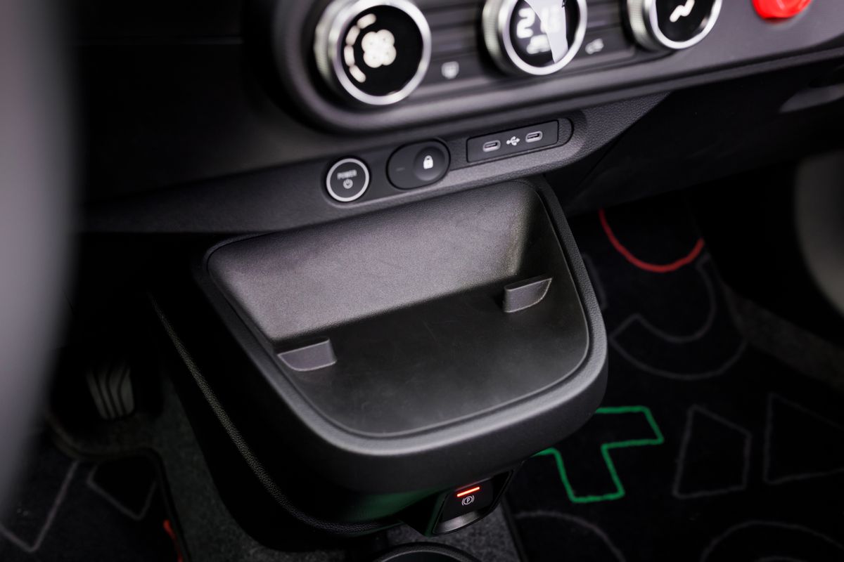 Fidèle à son ADN, l’habitacle de la Twingo E-Tech electric regorge d’astuces pour maximiser l’espace. Malgré son empreinte au sol réduite, elle propose une habitabilité digne du segment supérieur grâce à ses deux sièges arrière indépendants et coulissants sur 17 cm, une fonction proposée de série sur toutes les versions. La modularité est poussée à l’extrême avec la possibilité de rabattre le dossier du siège passager avant, offrant ainsi une longueur de chargement record de 2 mètres. Les rangements ne sont pas en reste avec 19 litres répartis dans l’habitacle, complétés par le système d’accessoires YouClip pour personnaliser son espace de vie.