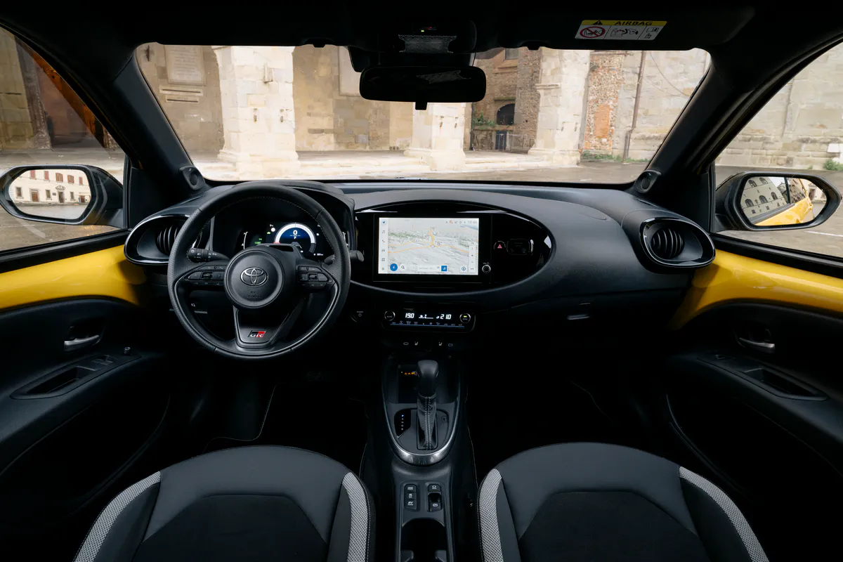 Intérieur de la Toyota Aygo X 2026L’agilité urbaine de l’Aygo X Hybride est désormais complétée par des systèmes de sécurité et d’assistance à la conduite de pointe. De série ou en option selon les finitions, on retrouve le pack Toyota Safety Sense de dernière génération. À l’intérieur, l’ergonomie progresse avec une interface multimédia réactive et une connectivité smartphone sans fil, rendant la vie à bord aussi intuitive que confortable pour les trajets du quotidien.