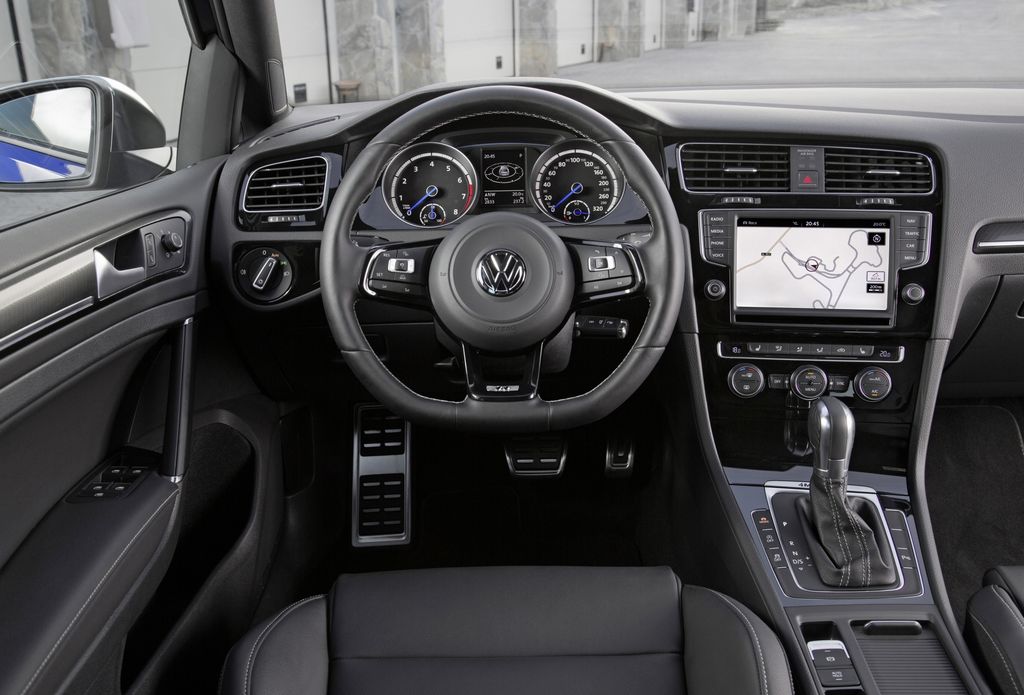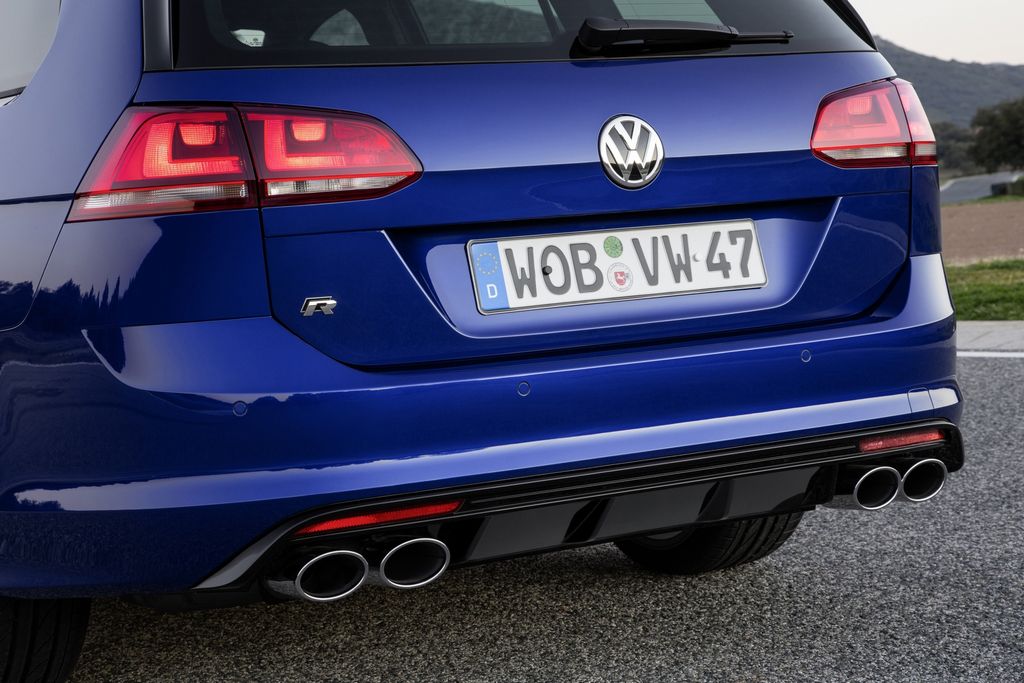 Esthétiquement, la Volkswagen Golf SW R se démarque par sa garde au sol abaissée de 20 mm, des jantes alliages de 18″ spécifiques, des boucliers avant et arrière redessinés et l’arrière se dote d’un spoiler, d’un diffuseur laqué noir ainsi q’une double sortie d’échappement à chaque extrémité.Avec son volume de coffre de 605 litres, la compacte reprend de la dotation de la finition Carat mais avec des équipements bonus :