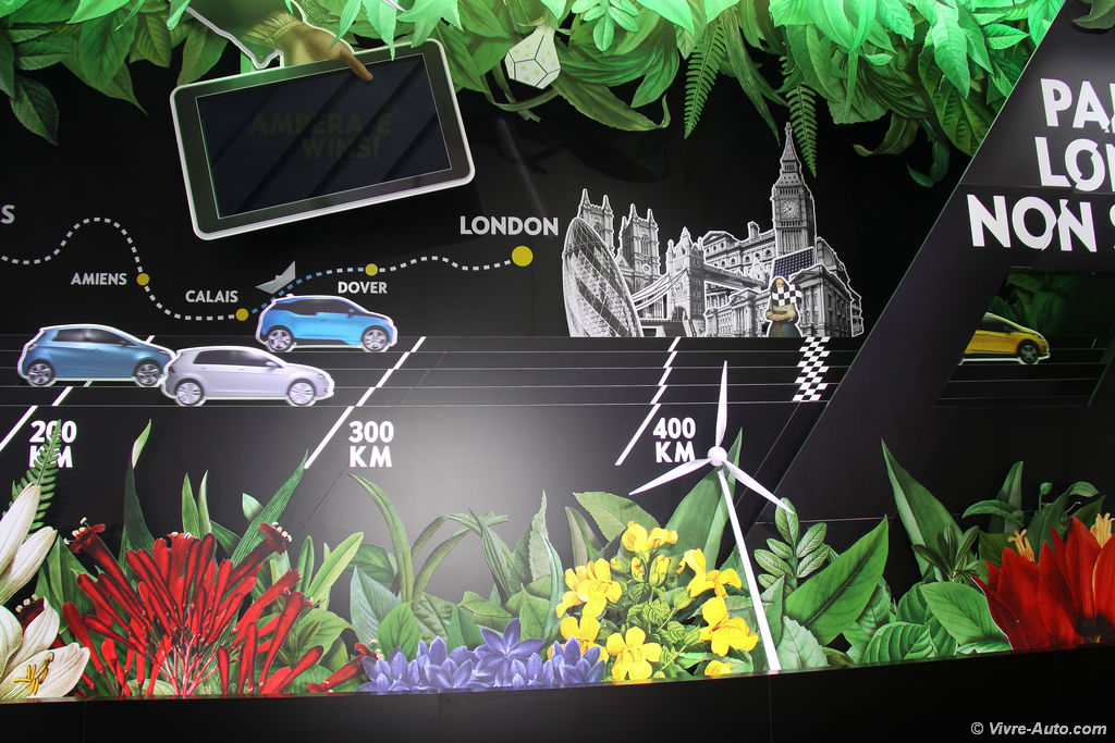 Longue de 4,17 mètres et grâce à sa silhouette de mini monospace et ses batteries logées sous le plancher, l’Ampera-e peut accueillir cinq personnes confortablement. Avec son moteur électrique de 150 kW, soit l’équivalent de 204 ch et un couple maximal de 360 Nm les sensations seront au rendez-vous. Le 0 à 50 km/h est effectué en 3,2 secondes et la vitesse maximale est bridée à 150 km/h. Selon le cycle NEDC qui ne reflète bien sûr pas la réalité, l’autonomie, batteries pleines, dépasserait les 500 km. Dans la pratique Opel annonce environ . Mais les ingénieurs de la marque au Blitz se sont lancés un défi, rallier Londres au salon de l’Automobile de Paris, soit un parcours de 417 km. A l’arrivée l’ordinateur de bord annonçait encore 80 km d’autonomie. Alors promesse tenue ? Nous vérifierons cela avec un essai complet. Tarifs et date de commercialisation sont encore inconnus.
